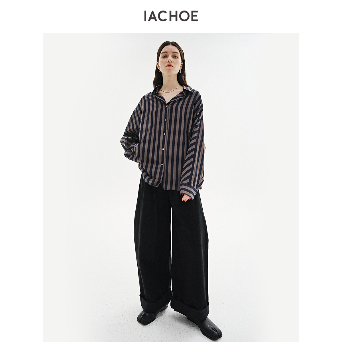 棉仓3621504003-IACHOE含桑蚕丝条纹衬衫
