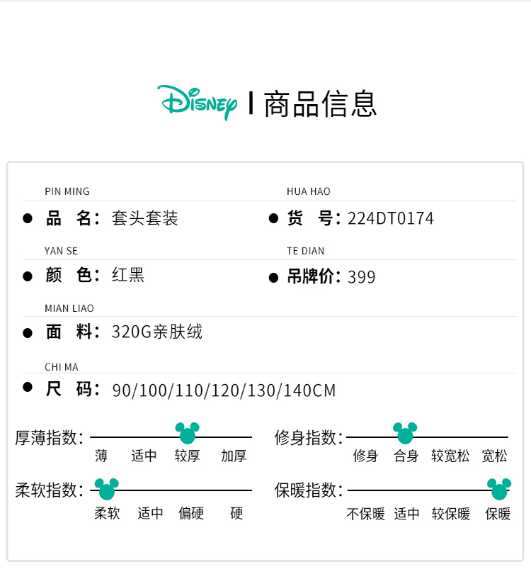 迪士尼宝宝童装男女儿童时尚休闲百搭舒适保暖秋冬季卫衣套装224DT0174