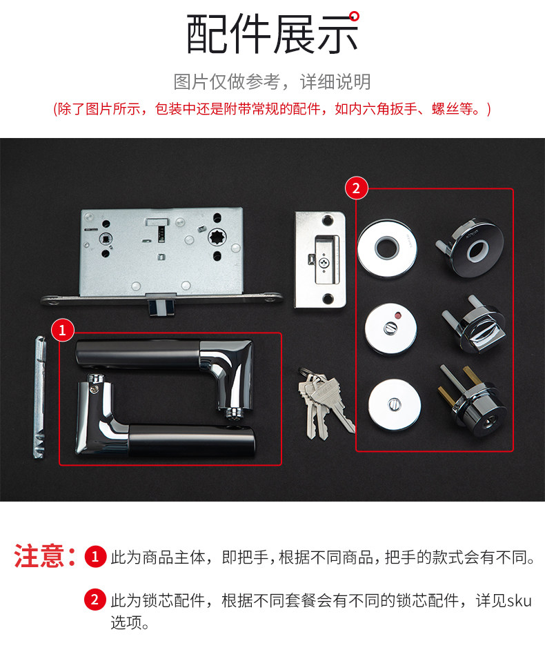 KAWAJUN静音门锁家用通用型把手卫浴卧室门锁锌合金套装门锁室内