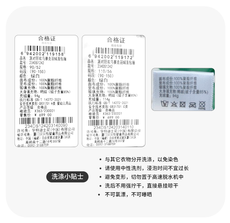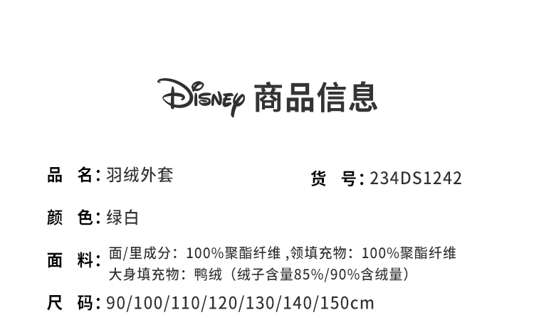 迪士尼男童唐老鸭羽绒外套234DS1242