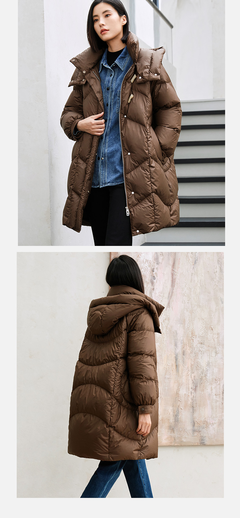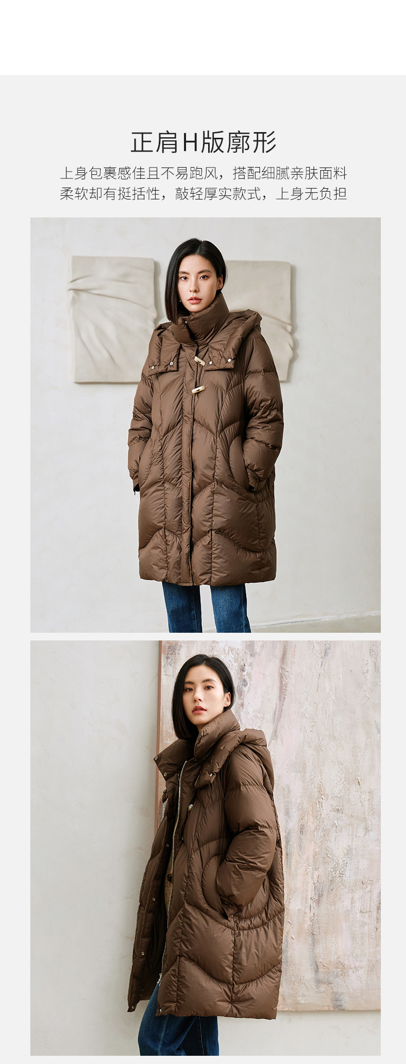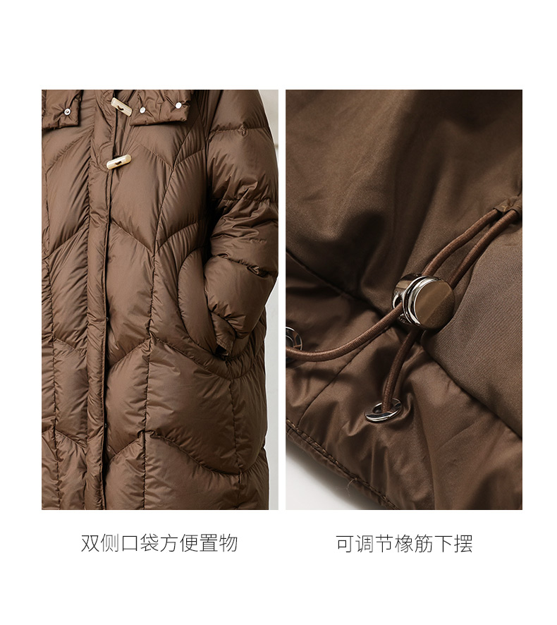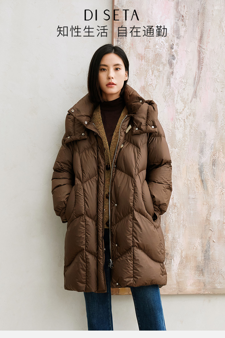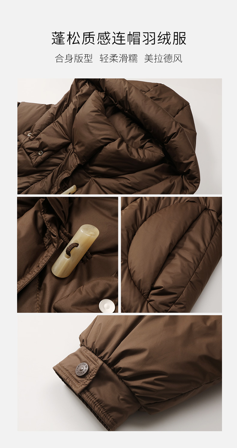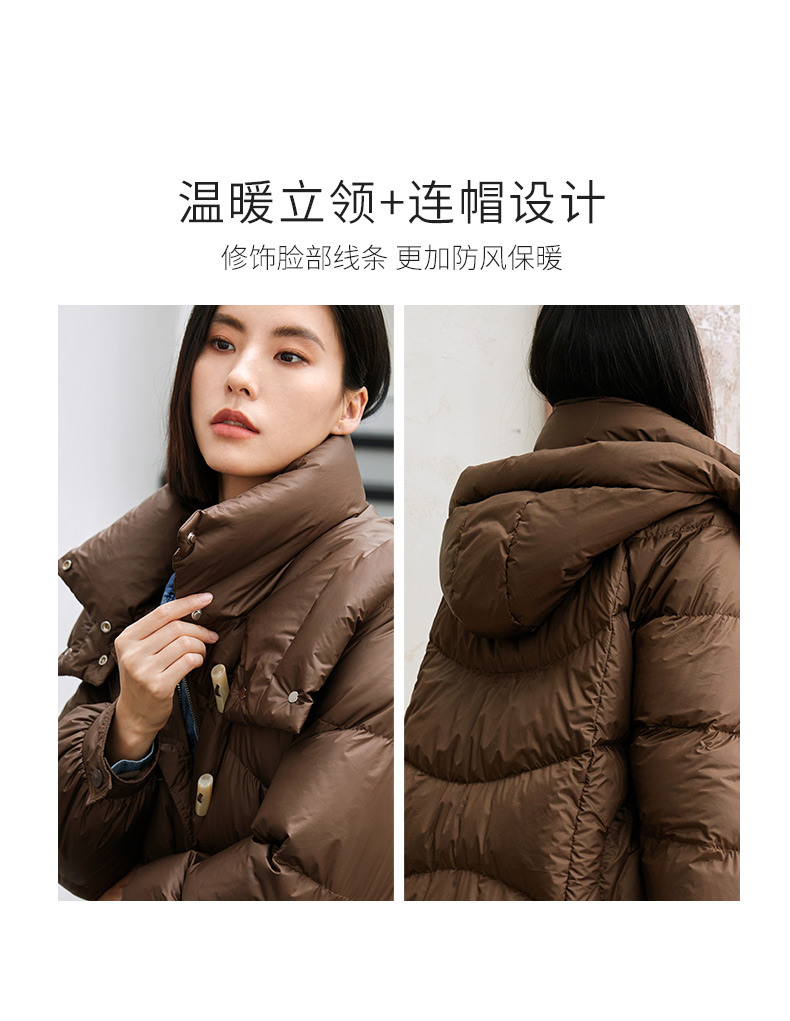 玳莎轻量感棉花糖中长款连帽羽绒服女冬季保暖立领外套 DD41309
