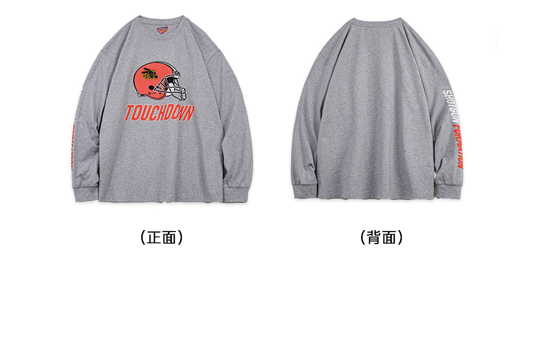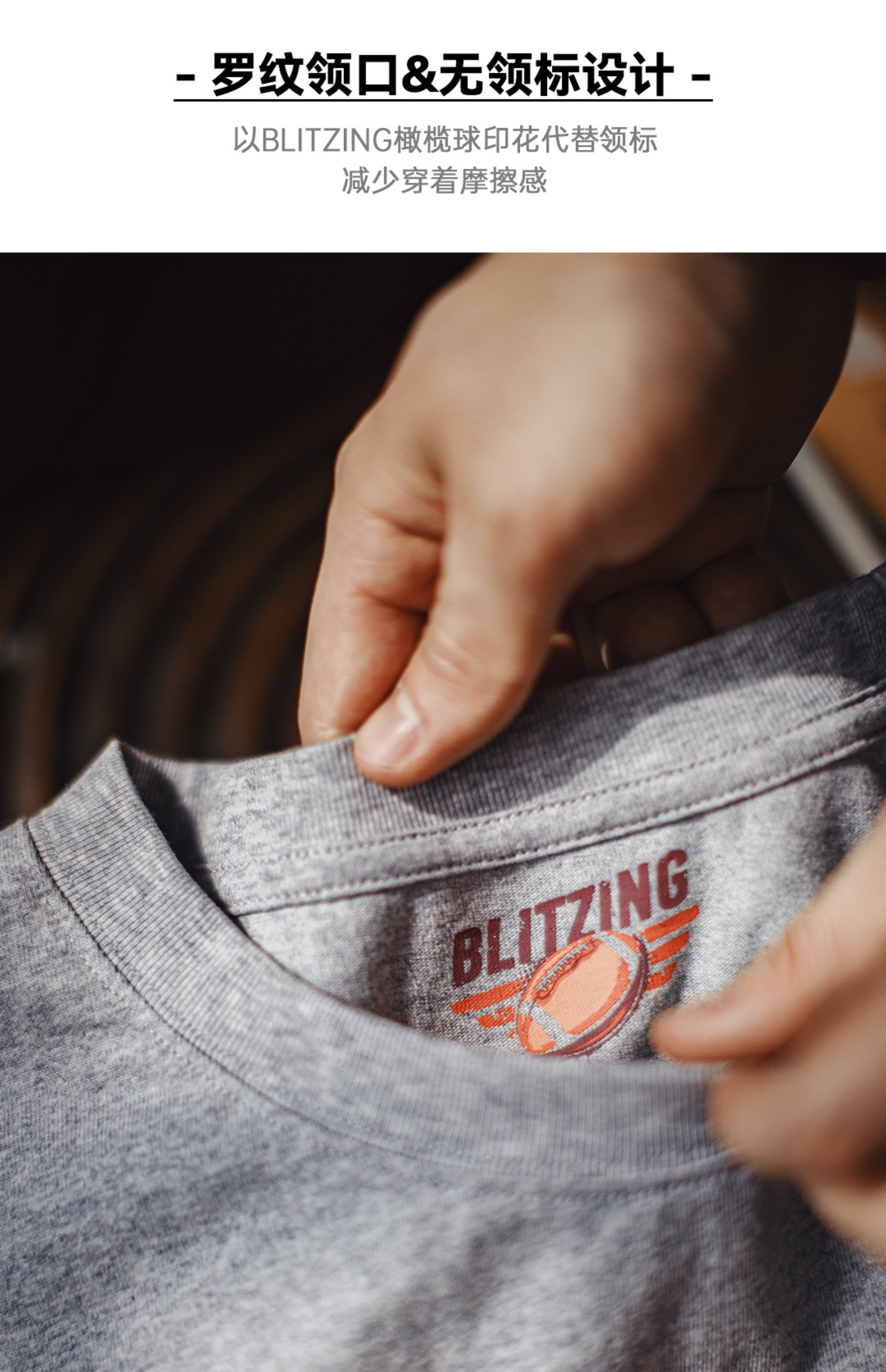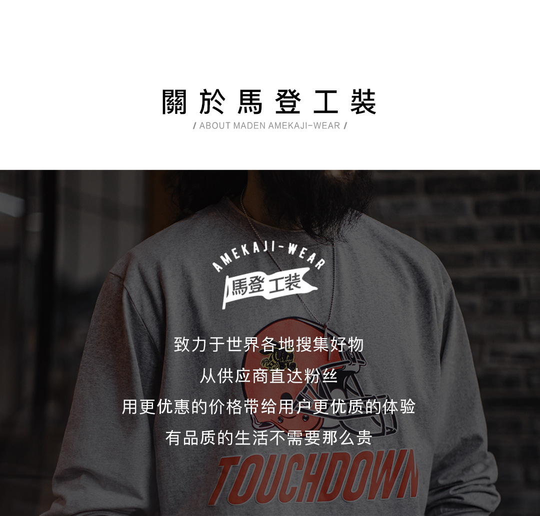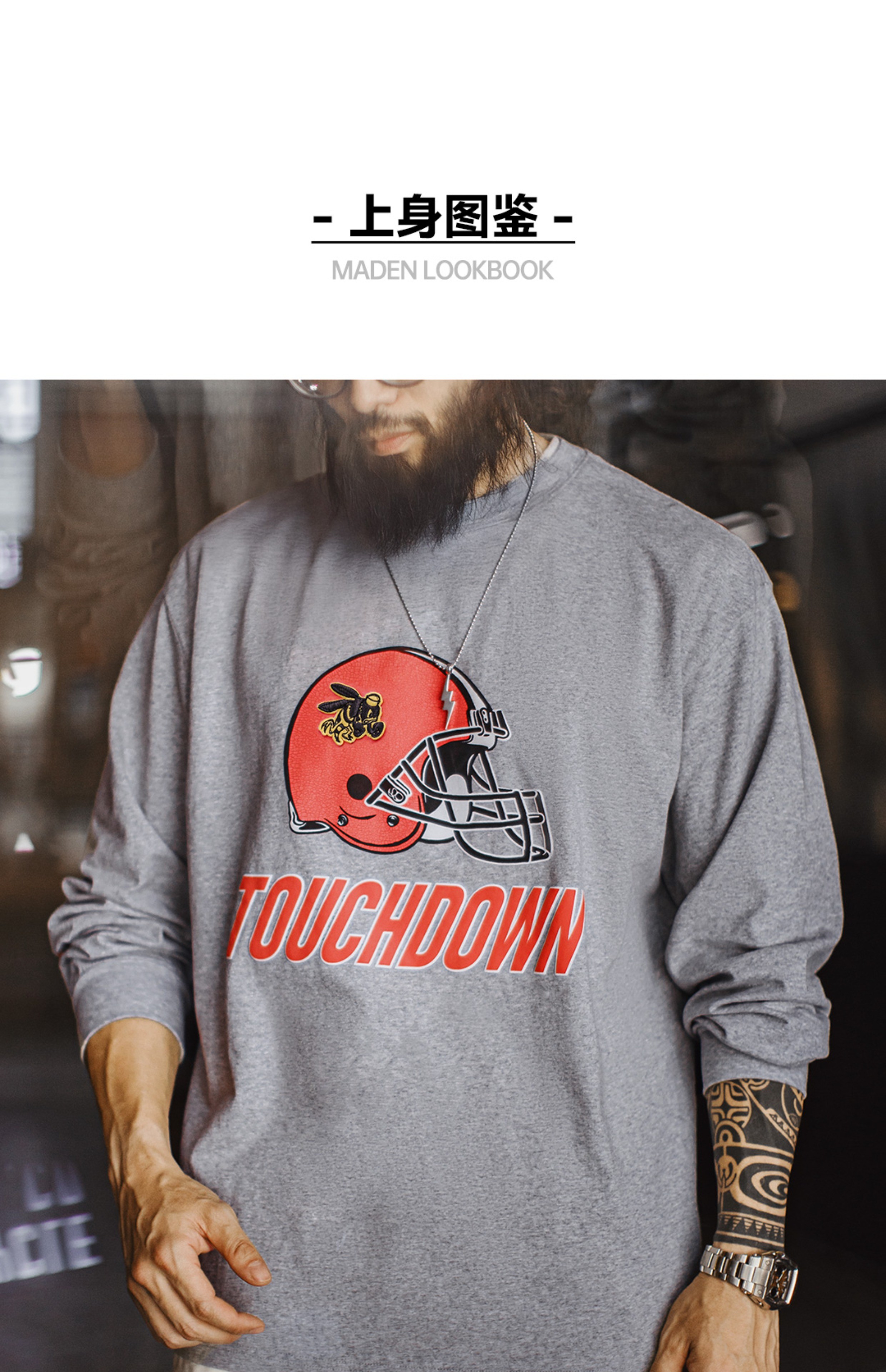 马登工装美式复古刺绣印花长袖T恤灰色圆领套头落肩卫衣外套男夏