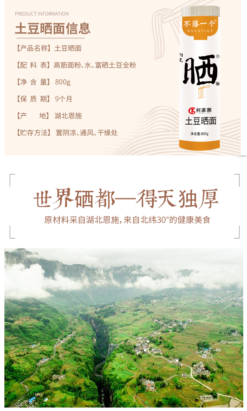 【恩施】不落一个 土豆硒面 恩施特产 800g/把