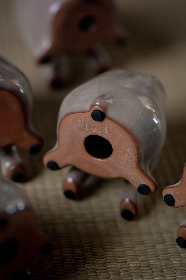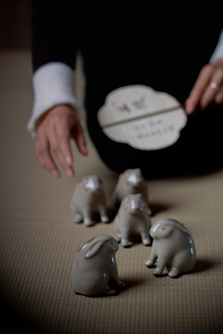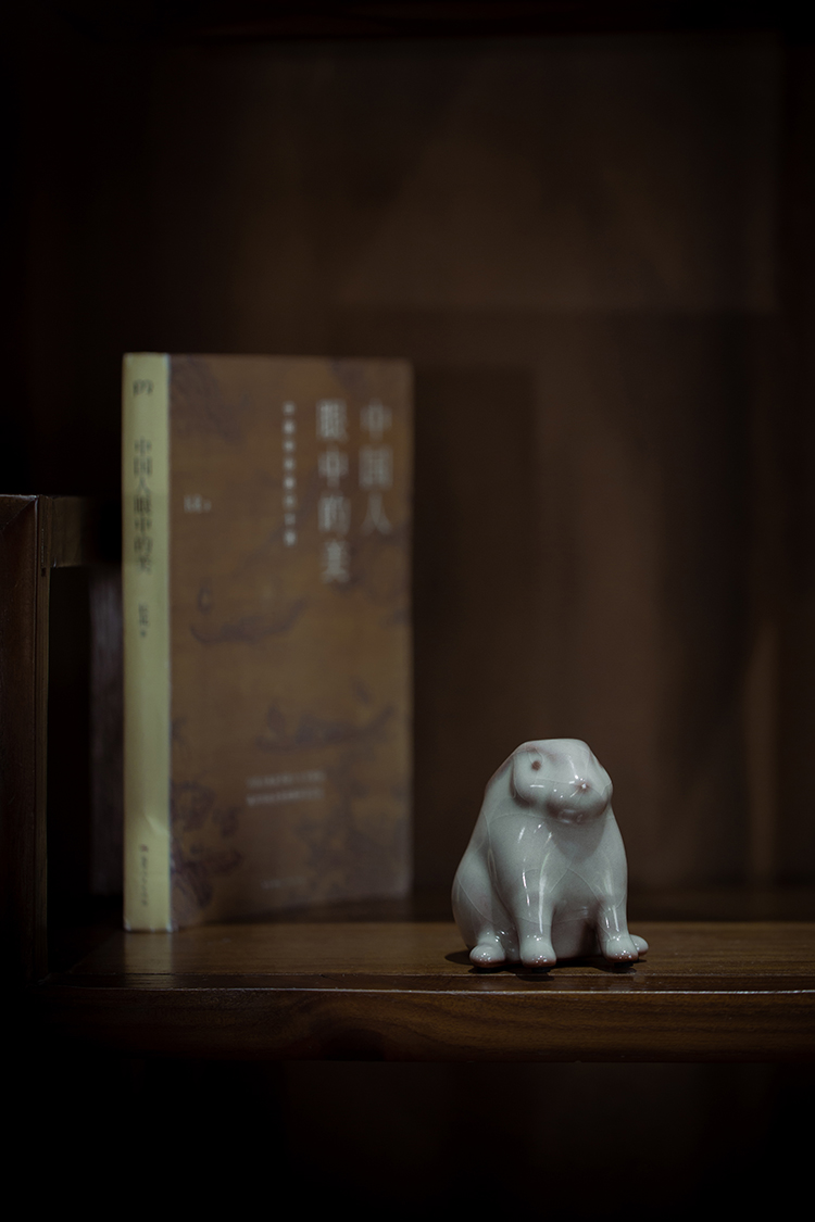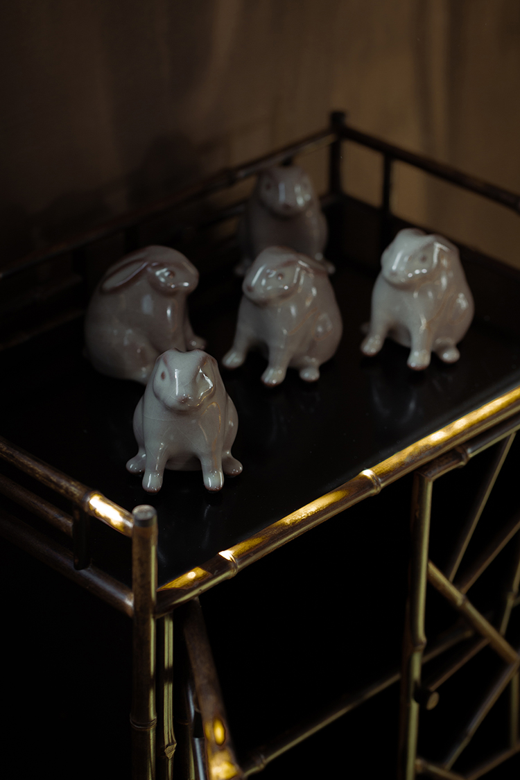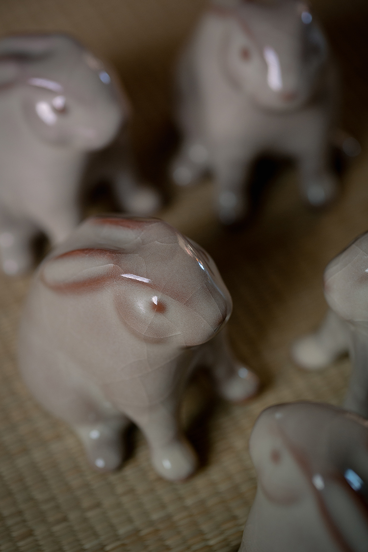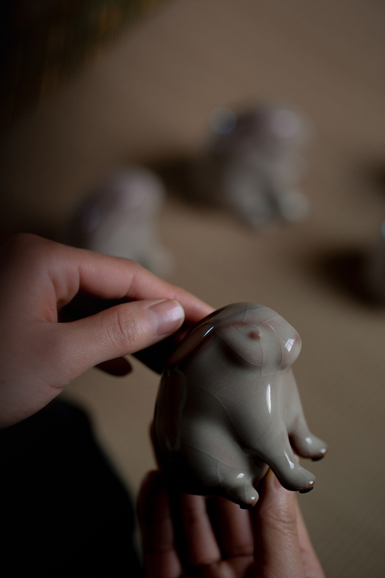 问鼎哥窑牛角款唐白兔茶宠