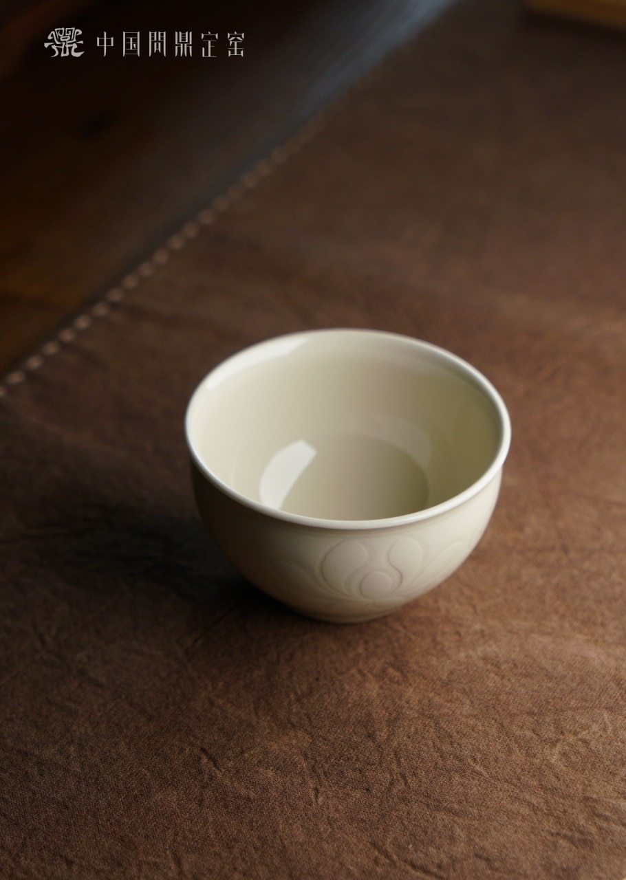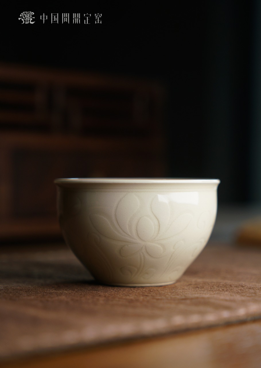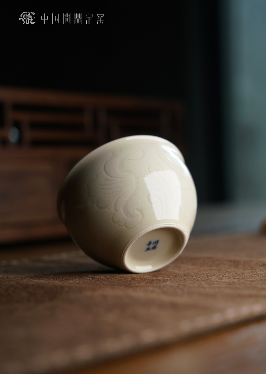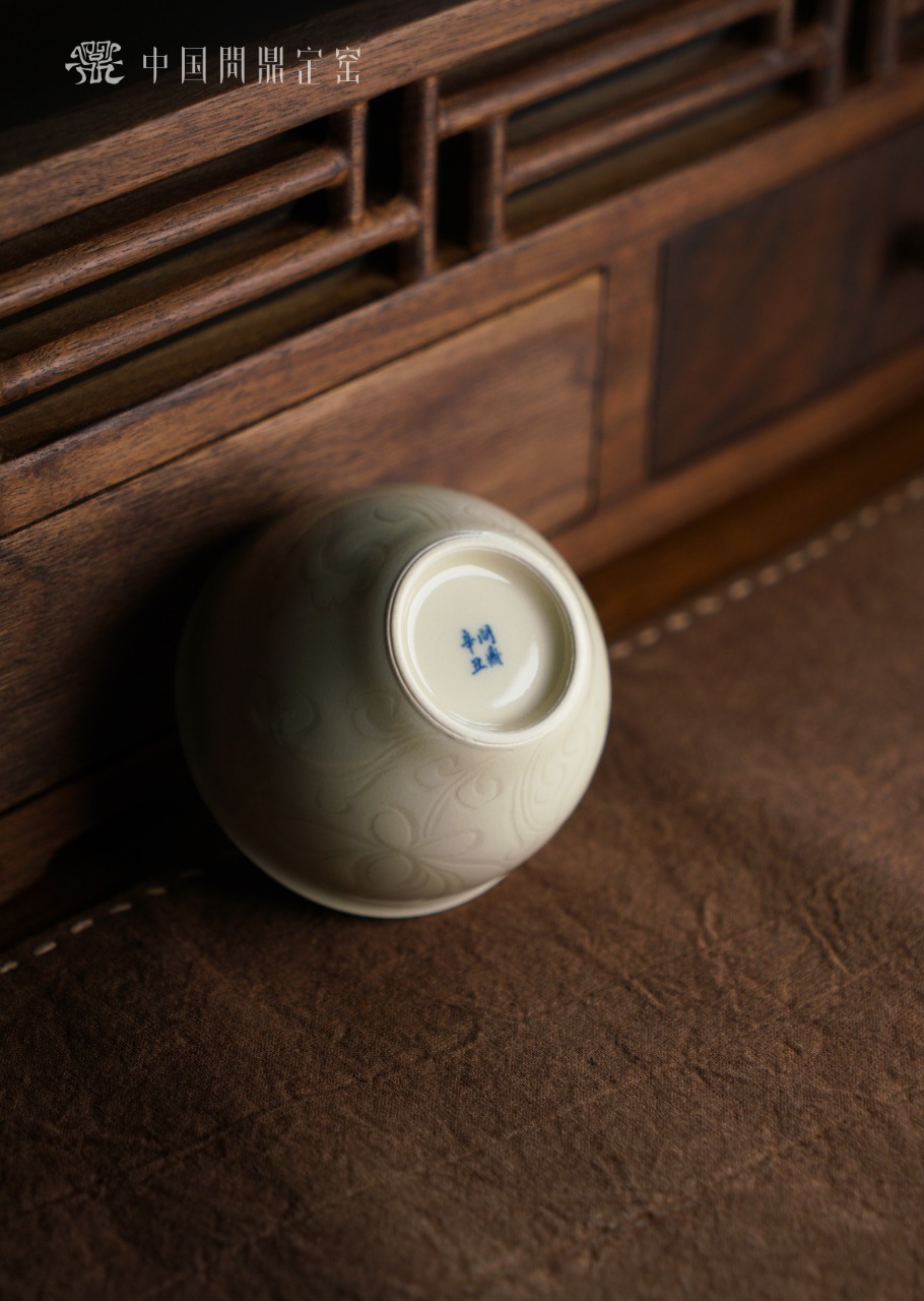 寒香慕古釉里红双勾莲压手杯(下单前请先咨询客服)