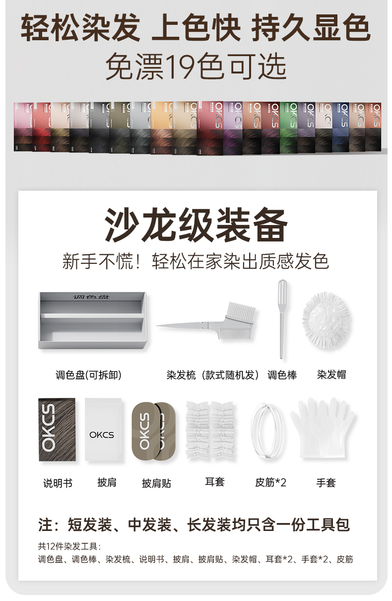 【汪东城代言 下单赠洗护小样10ml*2】OKCS 菁彩染发霜 新年换新发 温和染发 持色显色 不挑肤色 轻松上手 染发霜80g+显色乳80g/组 19色全系列可选