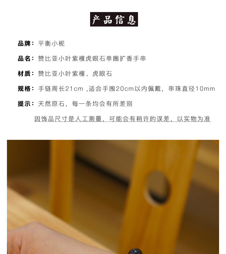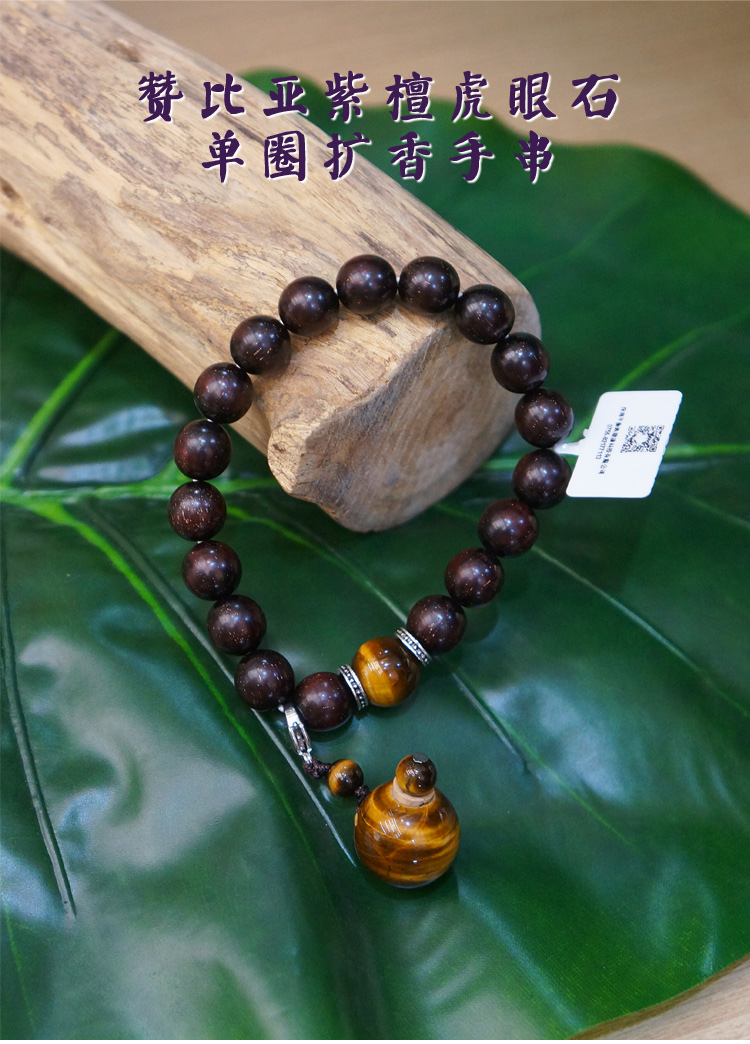 平衡小柅 赞比亚小叶紫檀虎眼石单圈扩香手串 /手链 男士
