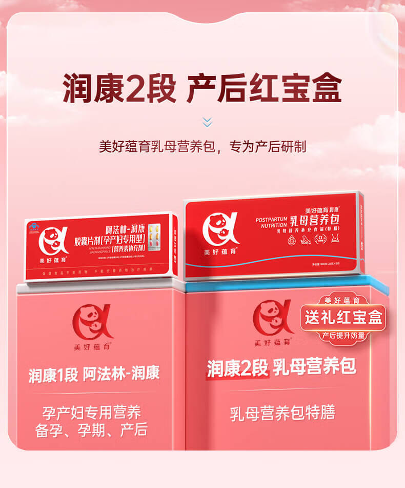 美好蕴育乳母营养包润康2段产后红宝盒哺乳期燕窝dha叶酸维生素月子期营养 30天量