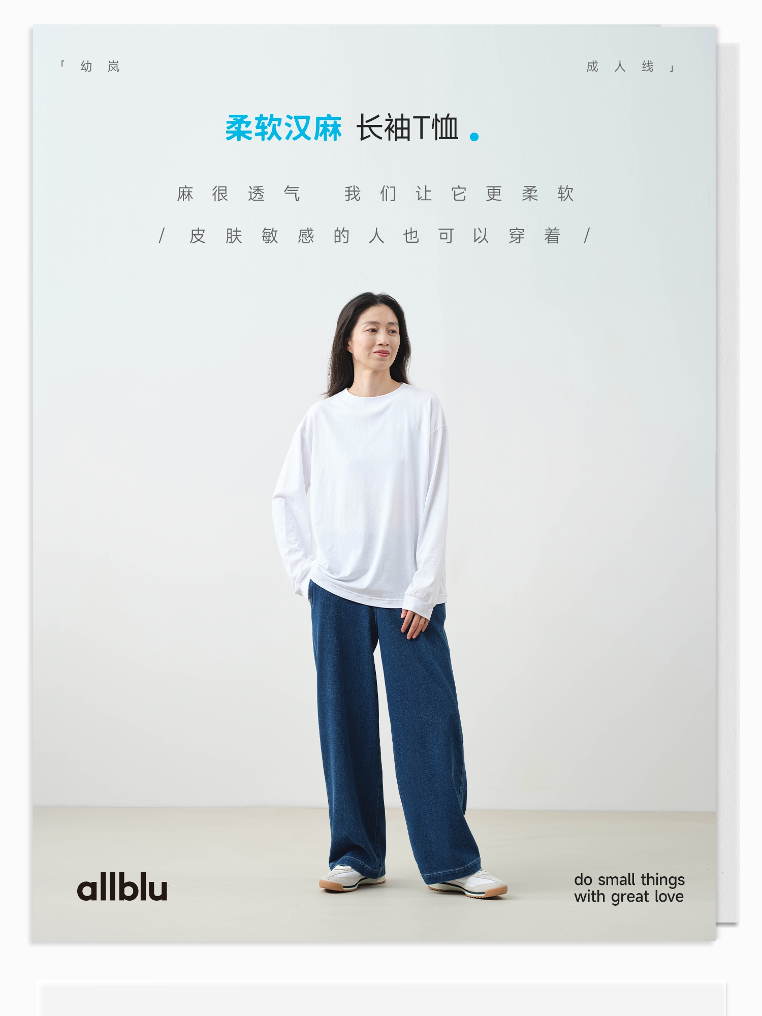 【粉丝专属】allblu幼岚"敏感肌也能穿"【女士柔软汉麻长袖T恤】|透气亲肤Tee