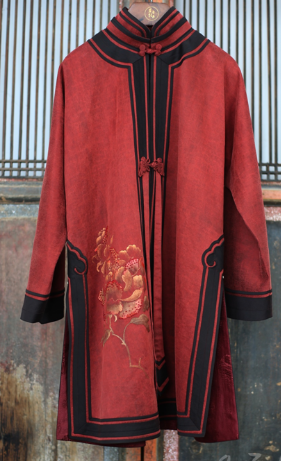 盛唐牡丹| 重缎真丝红云纱手绘串珠外套