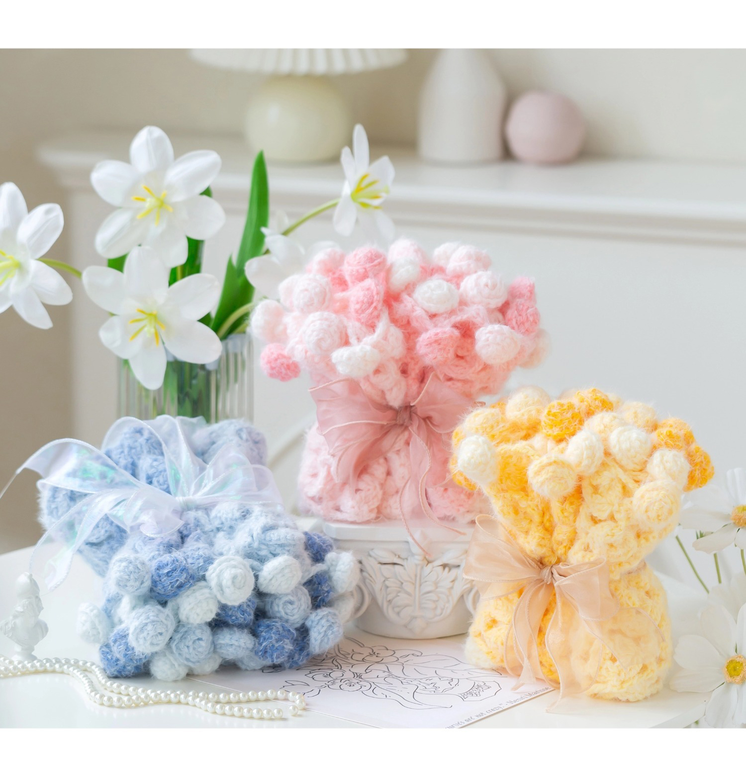 苏苏姐家富贵花围巾手工diy编织钩针梦羽毛线团自制围巾材料包