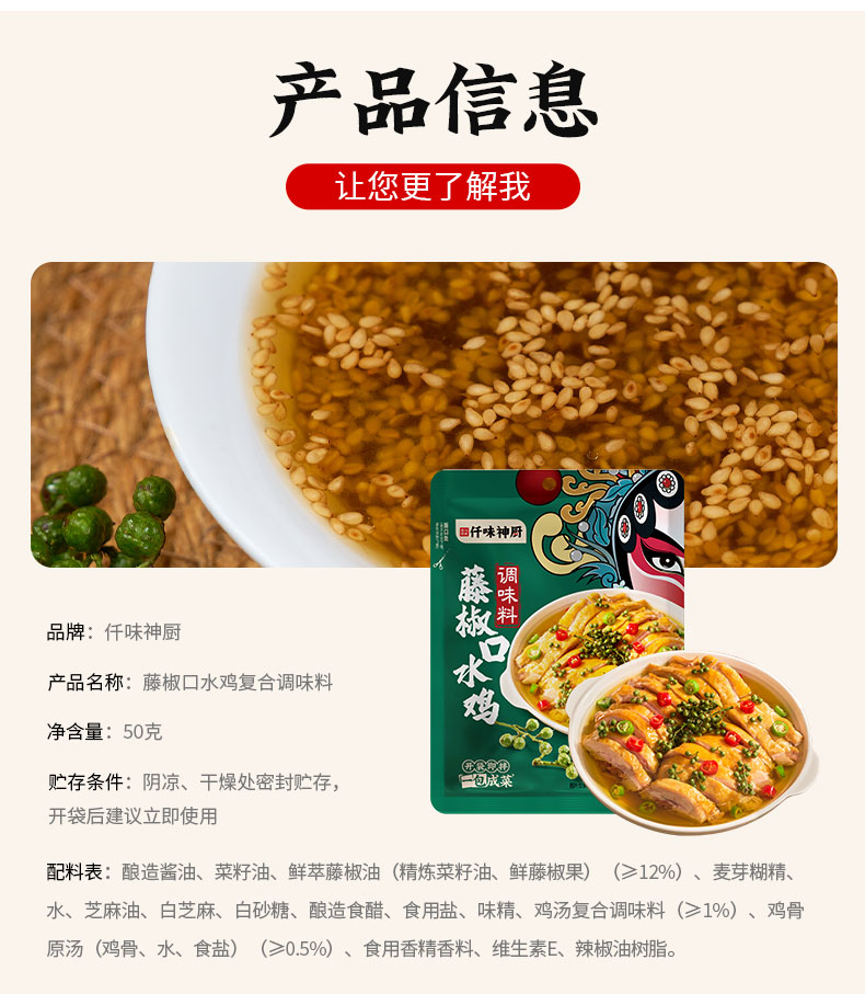 【仟味神厨】藤椒口水鸡调味料50g 椒麻清香 一包成菜 0防腐剂