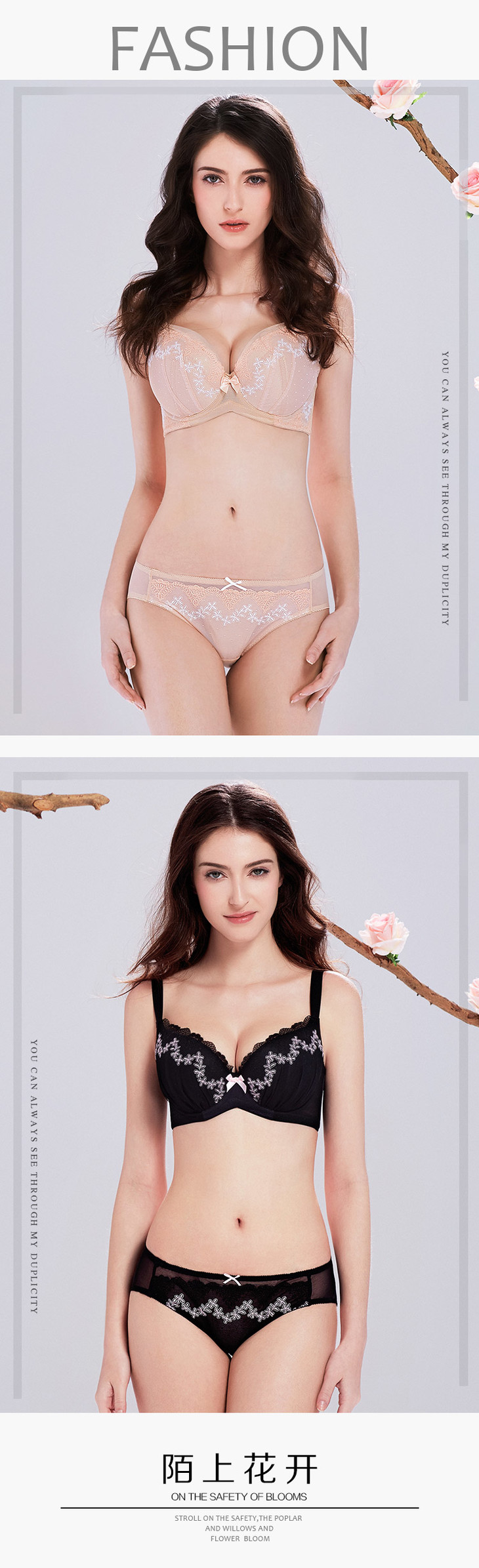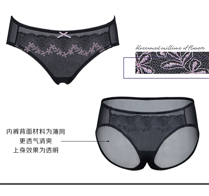 陌上花开配套刺绣内裤 暖肤、墨黑 低腰女三角裤 奶糖派Candy La VIE204A007