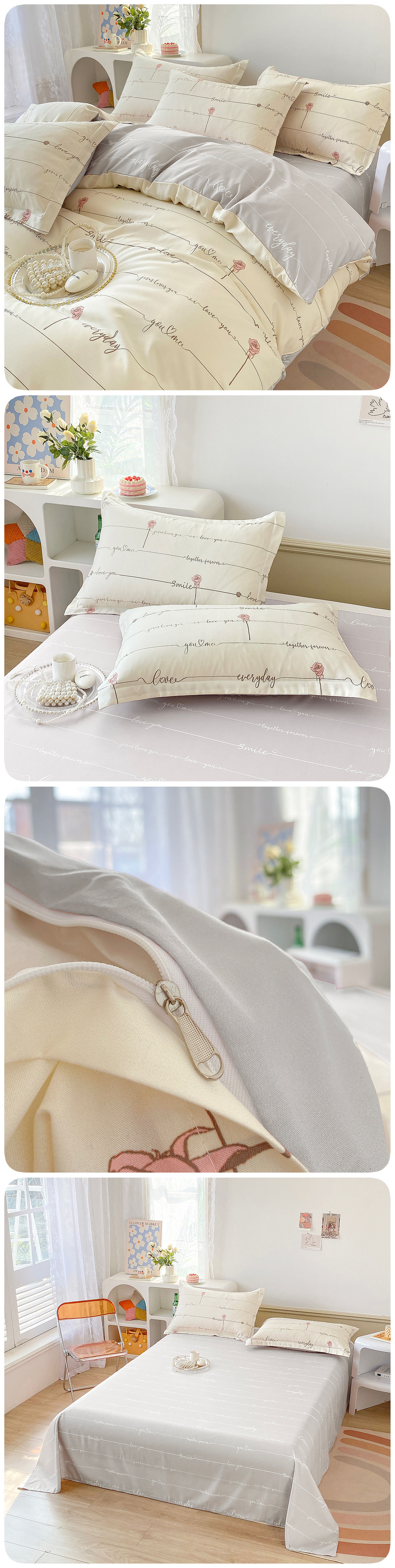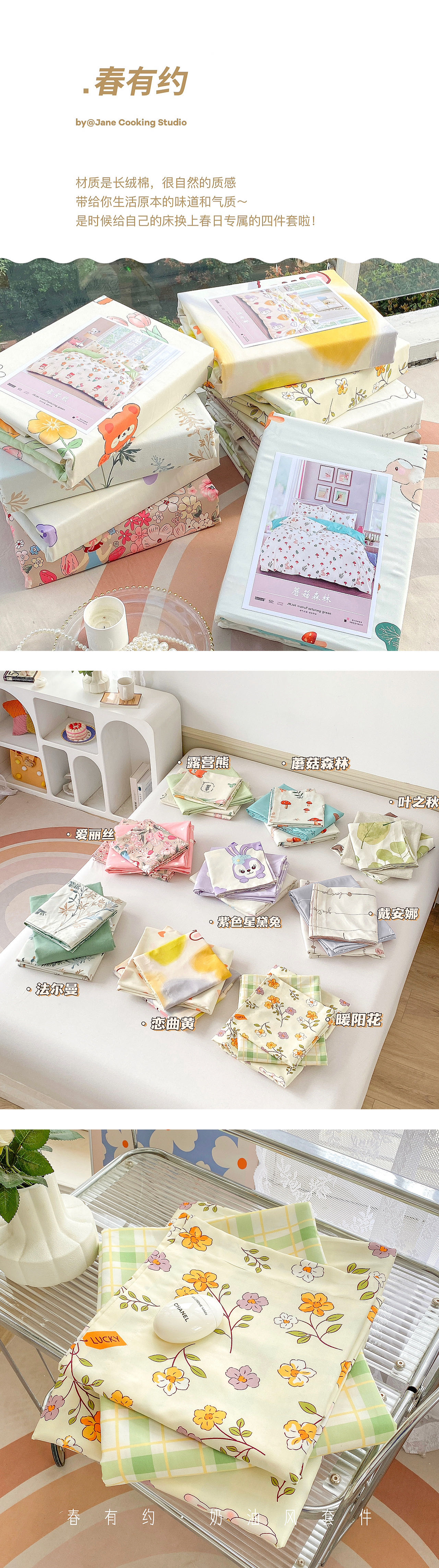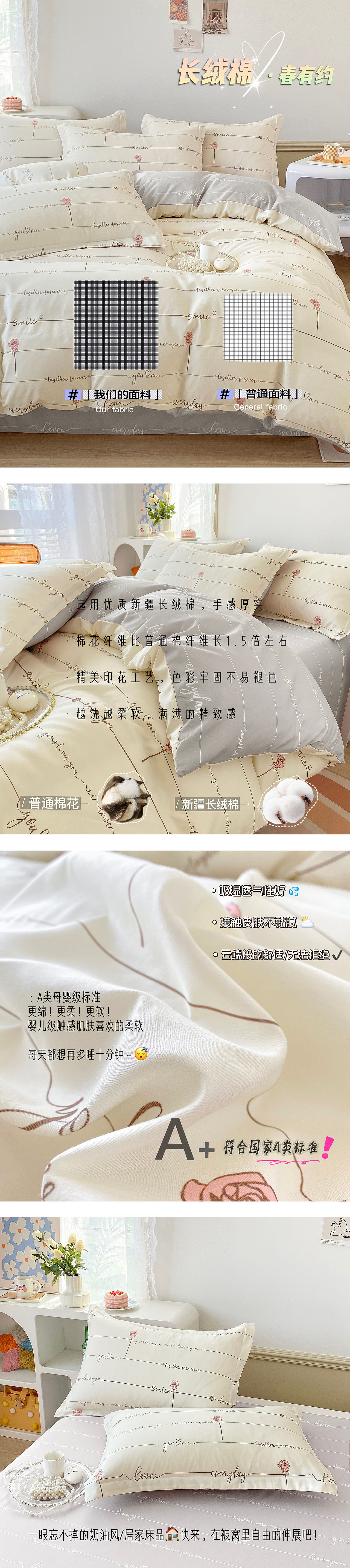 占姆士奥莱款 小清新简约长绒棉四件套床上用品轻奢被套罩床单冬 学生宿舍床上用品