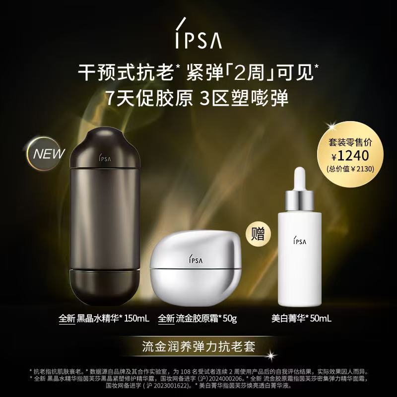 【2件再享9.8折】【618抢先购】1楼IPSA茵芙莎黑晶紧塑修护精华露150ml+密集弹力精华面霜50g