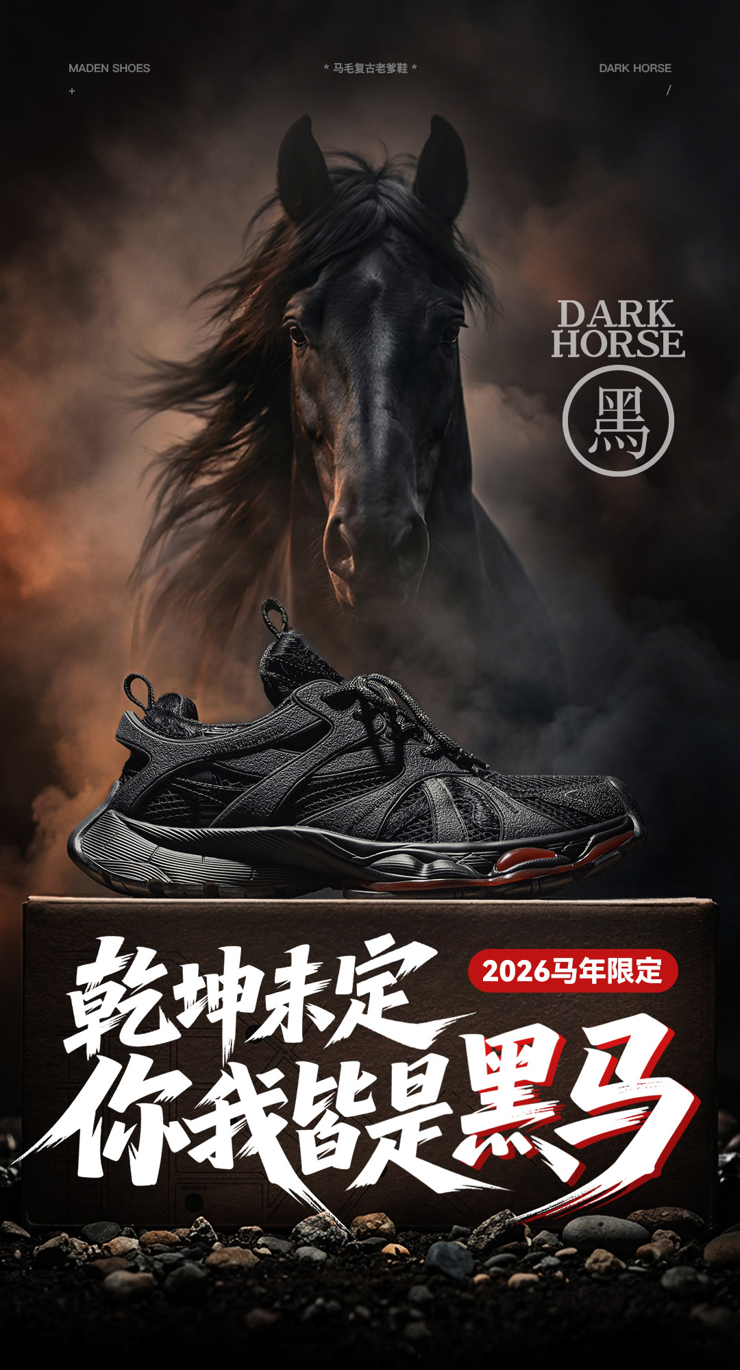 马登马年限定黑马老爹鞋男2025秋冬新款厚底增高复古休闲运动波鞋
