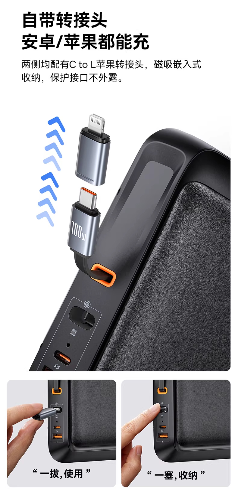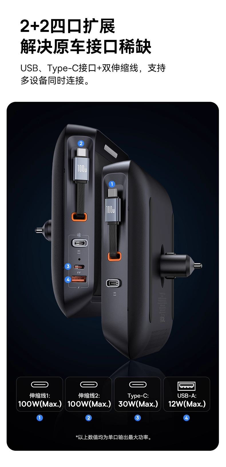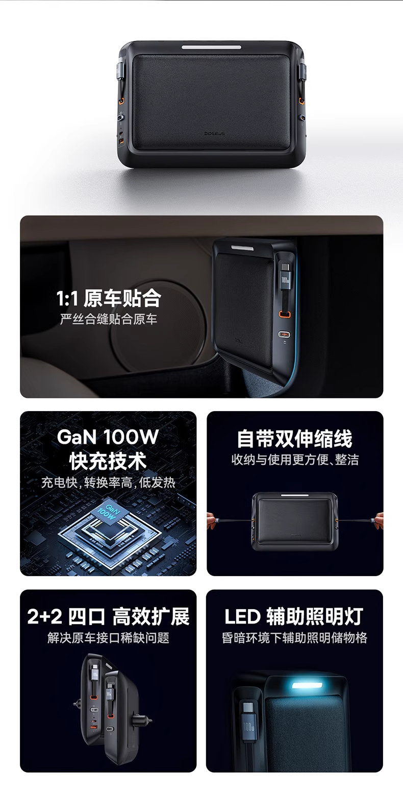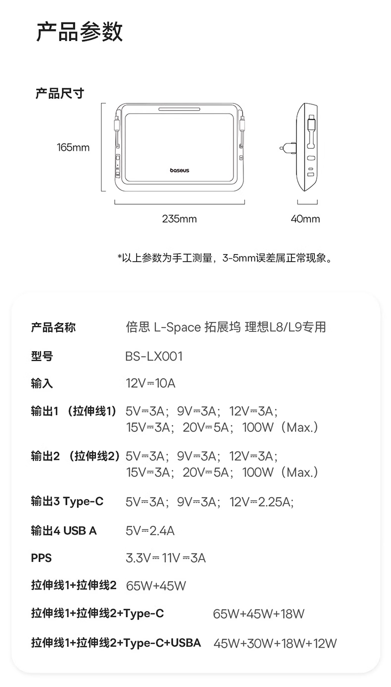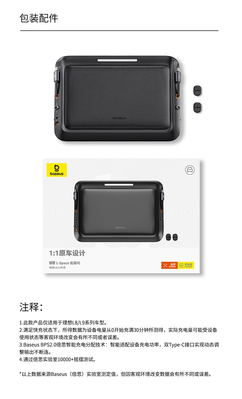 【十一专享】倍思 L-Space 拓展坞 理想L8/L9专用 星曜黑 (Cable*2+A+C)