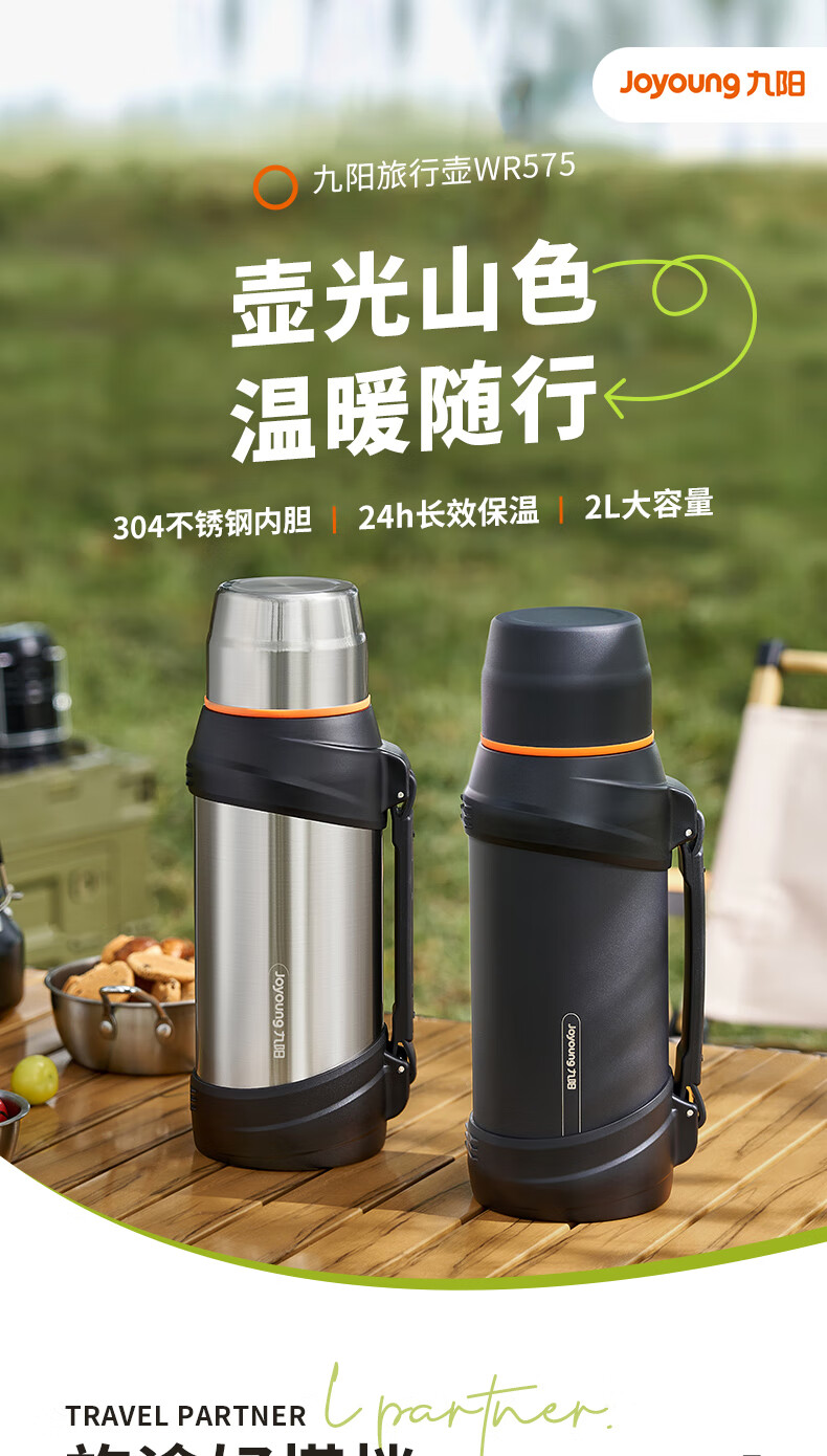九阳旅行壶家用大容量保温壶不锈钢保温杯户外车载水壶便携热水瓶