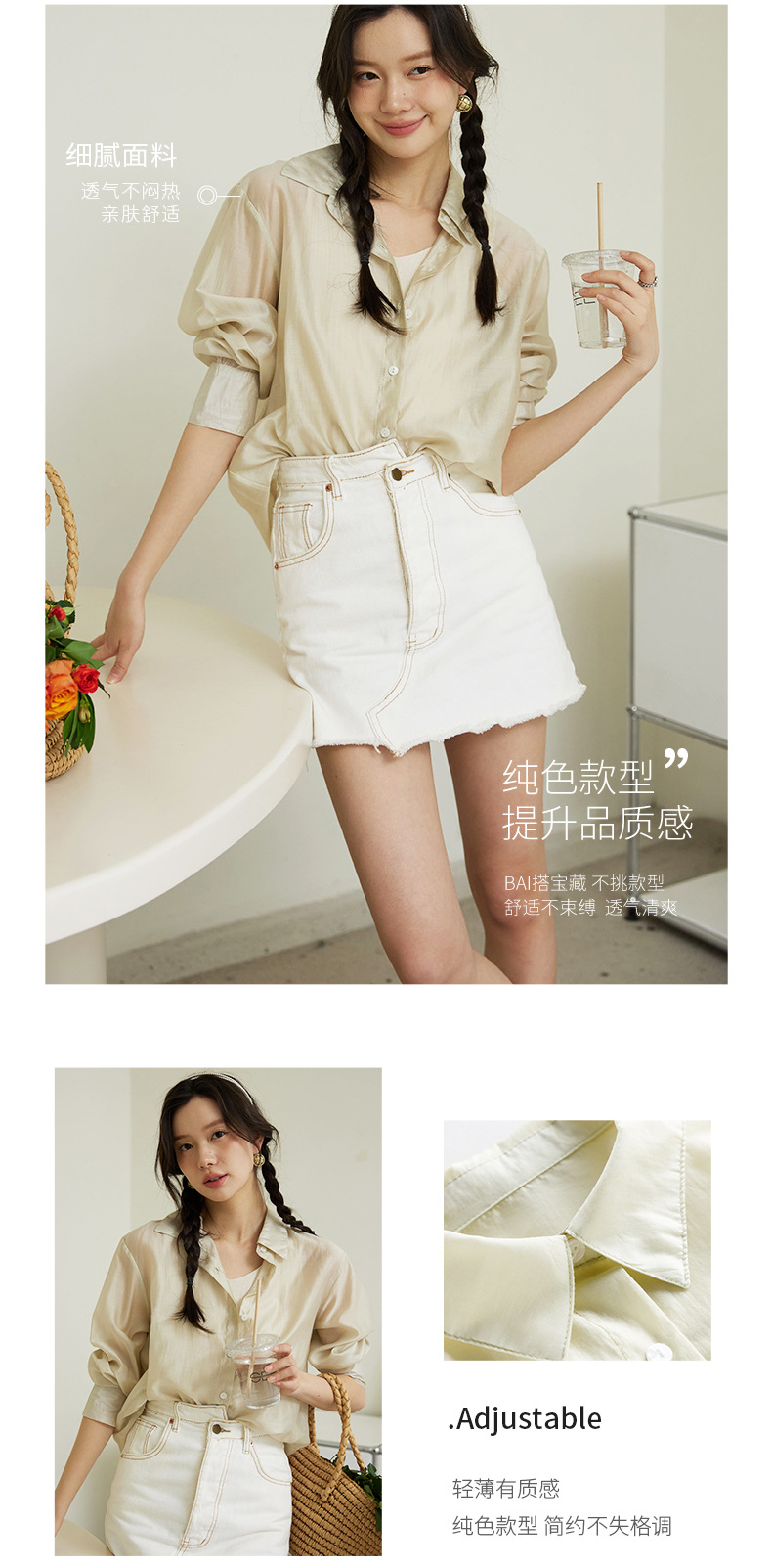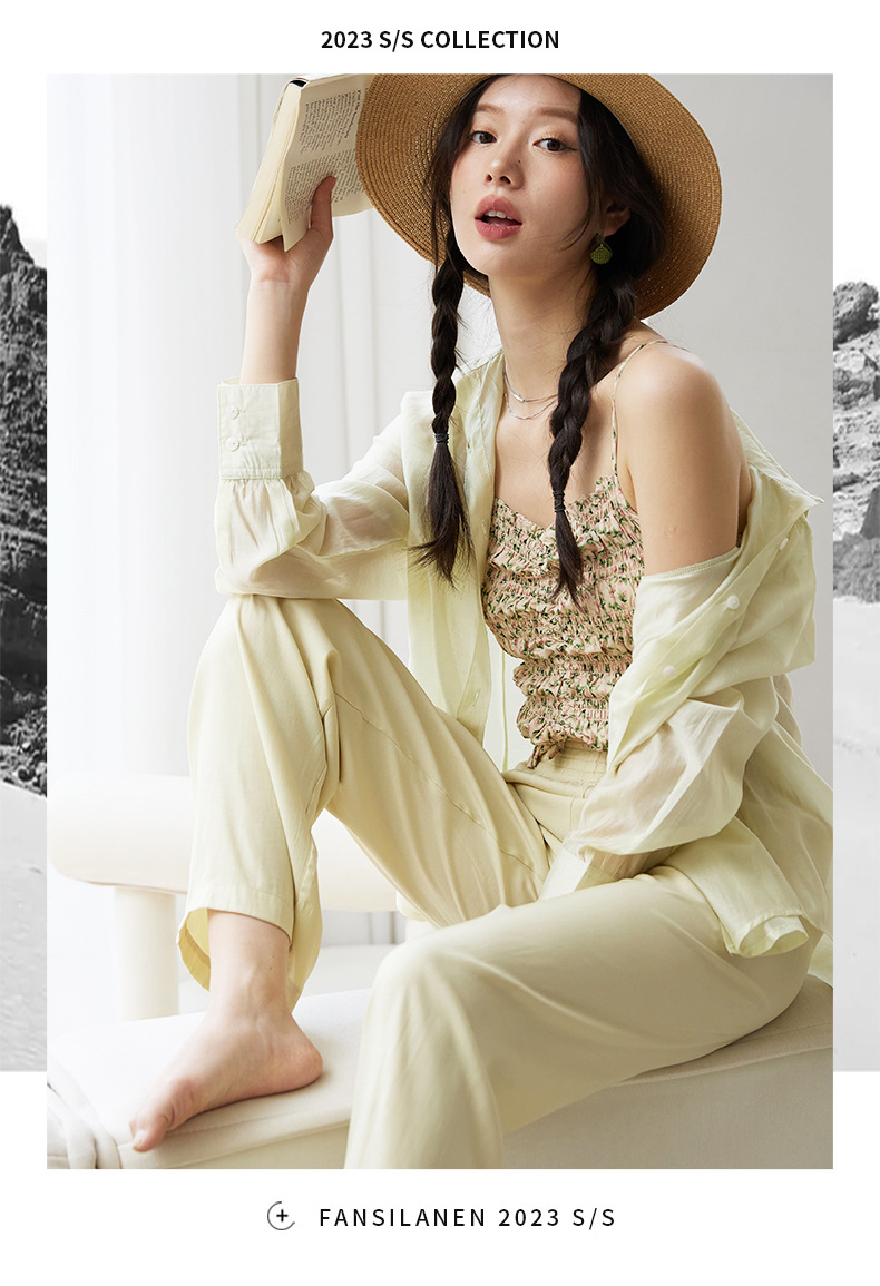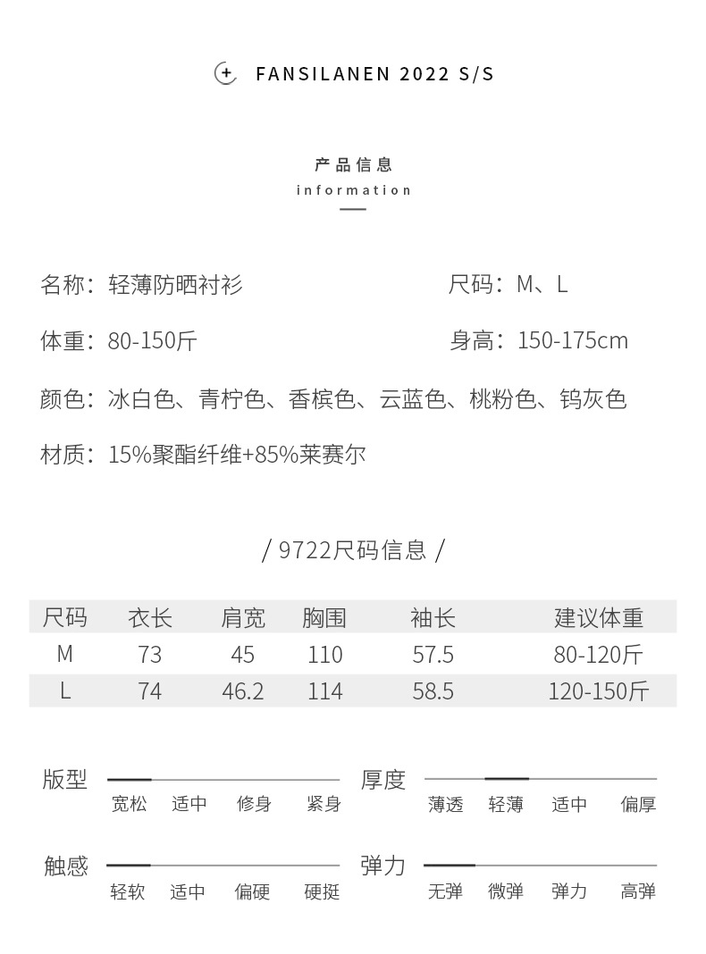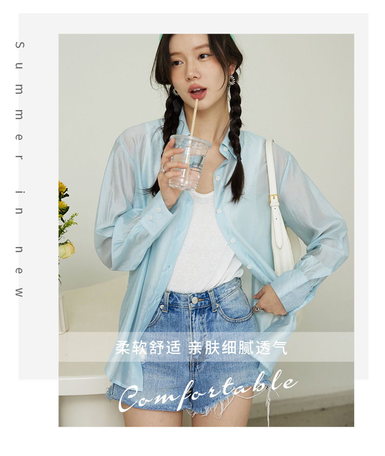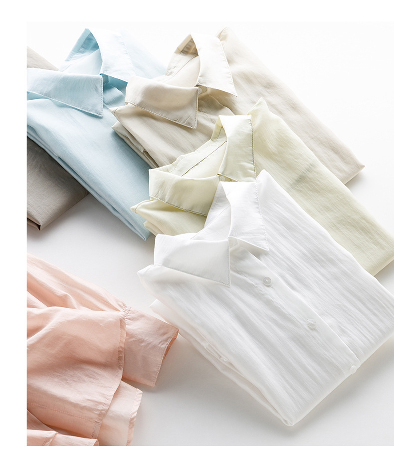 莱赛尔天丝防晒衬衫 溢出屏幕的高级感 薄如蝉翼,幻如月光,阳光下泛着淡淡的光泽,看着超美! 轻薄修身 柔软舒适 糖果色治愈系