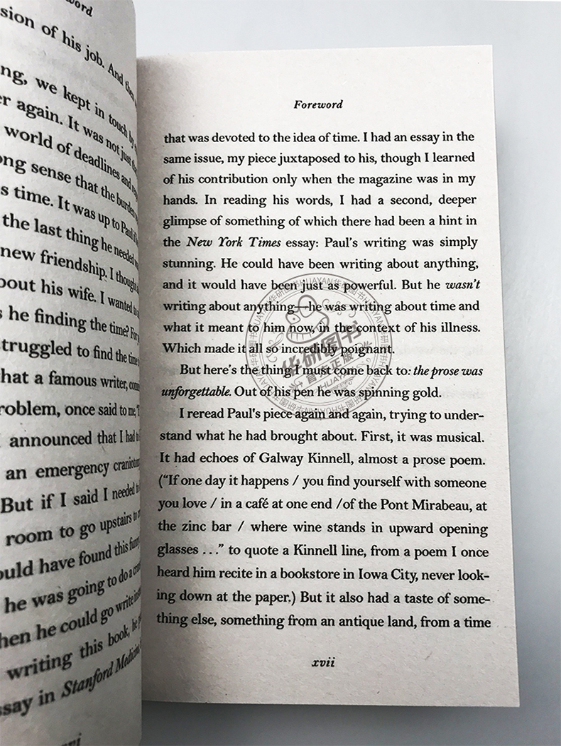 “一位天才作家对人性的感人思考,他条理清晰地呈现了医生和病人的双重视角……写作和手术不同,鲜有人能如保罗这样同时精通二者。”——《科克斯评论》