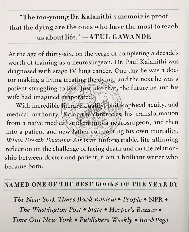 “这本书令人心碎,亦致极美好。英年早逝的卡拉尼什的这部回忆录告诉我们,关于如何“生存”,“死亡”是zui好的老师。”——阿图·葛文德(《zui好的告别》作者)
