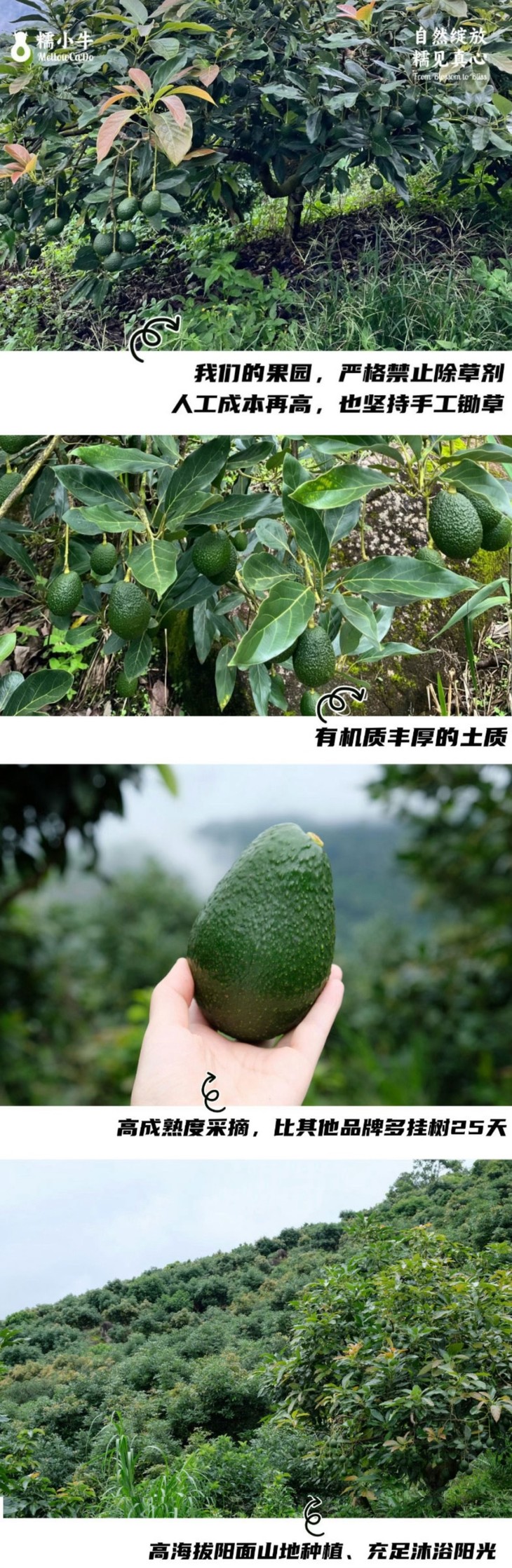 以前牛油果基本上是依赖进口的,但长途跋涉是真的不新鲜,再加上价格也挺贵,真不是所有人都愿意吃吃。但现在,有云南孟连的牛油果咯,8成熟时才从树上采摘,送到我们手中时接近成熟,放几天,等皮变黑后,真的是口感超赞,也更自然新鲜!