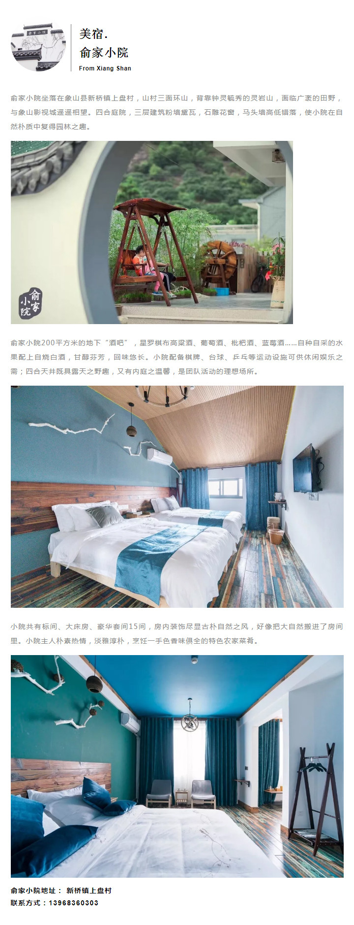 3、民宿预约:13968360303(务必提前一周联系前台预约入住,有效期截止5月31日,清明节、劳动节不可用);