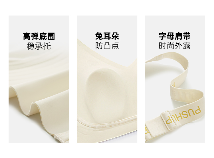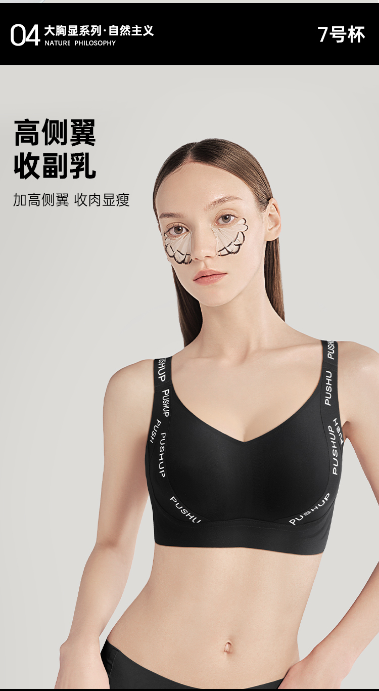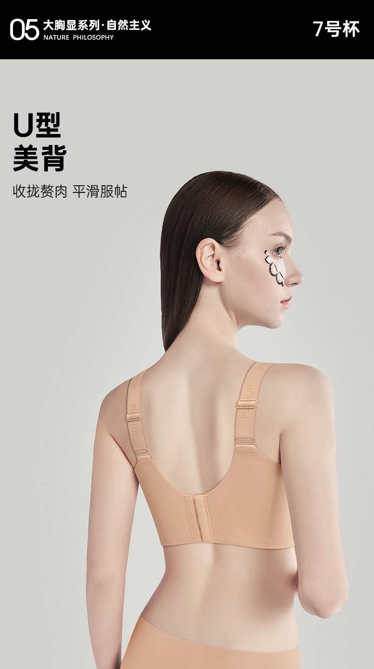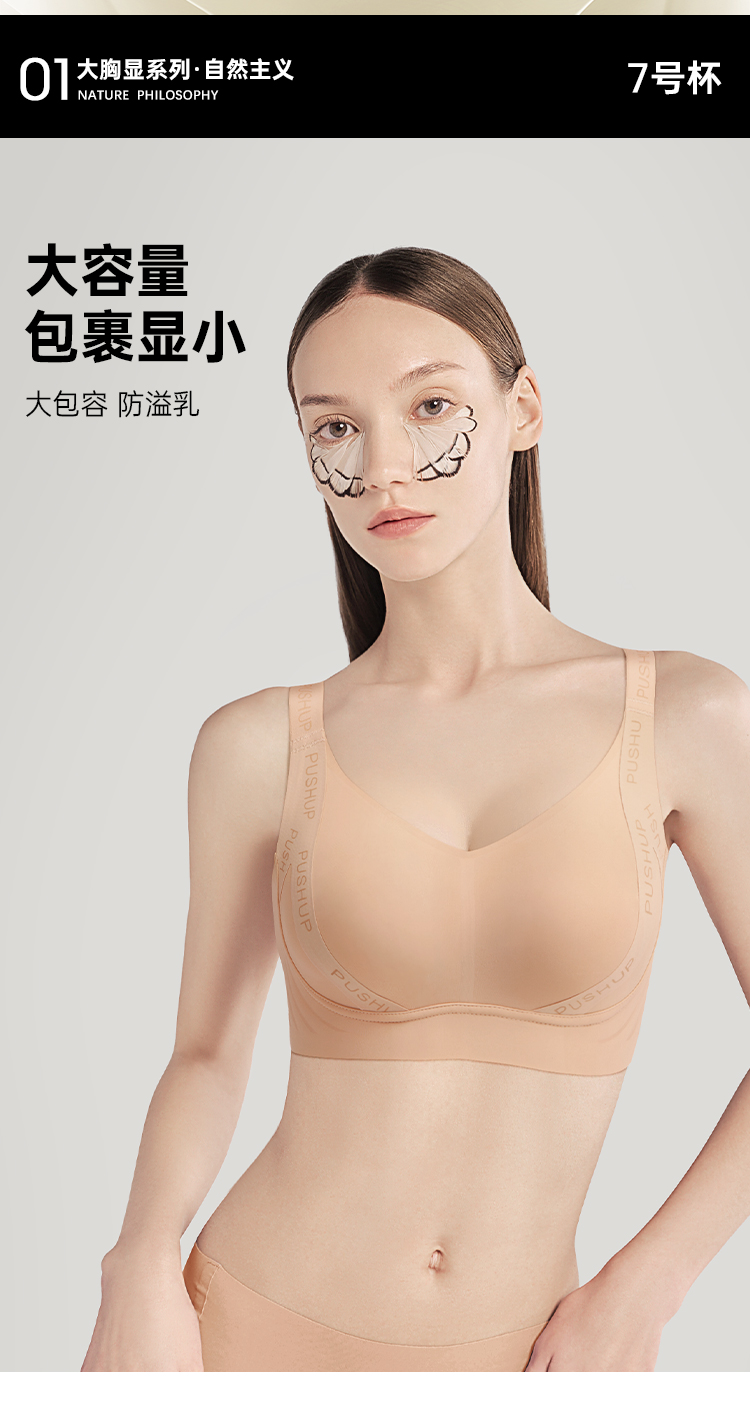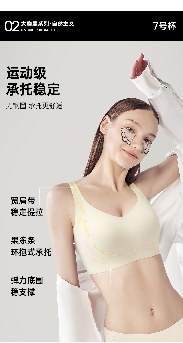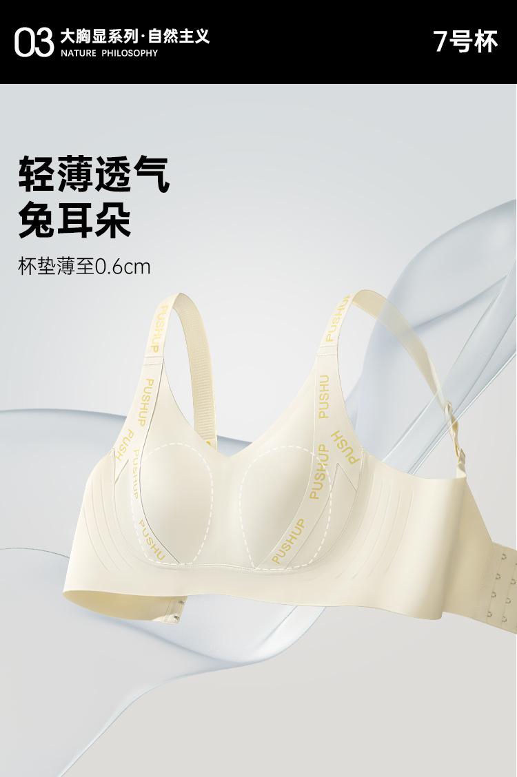 D1-【B-E杯】【超薄兔耳朵】【运动型全包裹】【7号专利杯】润微大胸显小轻薄无痕防下垂内衣女无钢圈美背文胸罩 薄云淡淡