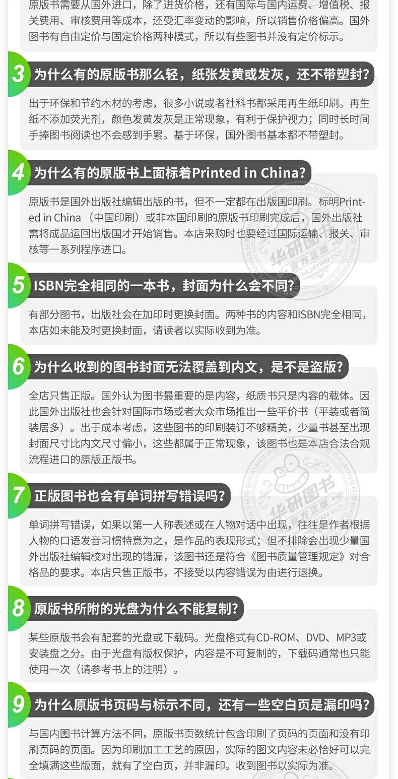 - 本店是“华研外语”品牌商自营店,全国所有“华研外语”、“华研教育”品牌图书都是我司出版发行的,本店为华研官方源头出货,所有图书均为正规正版,拥有实惠与正版的保障!!!