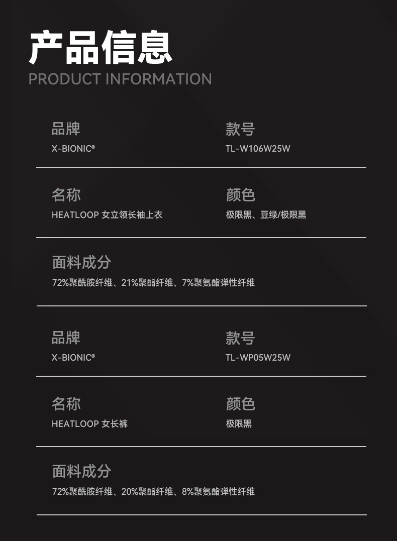 X-BIONIC 热循环女士立领上衣 秋冬隔热蓄能保暖抑菌滑雪压缩衣 W106W25W