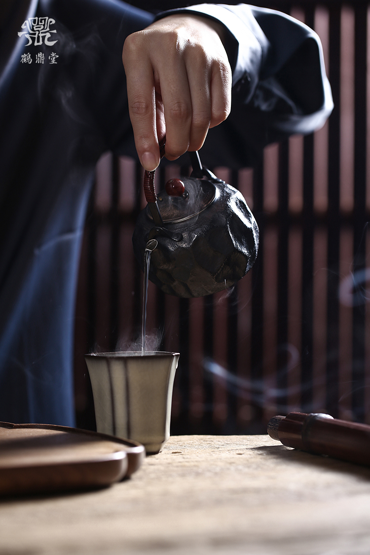 鹤鼎堂银壶于野系列天作急须石纹肌理(黑色)(缺货)