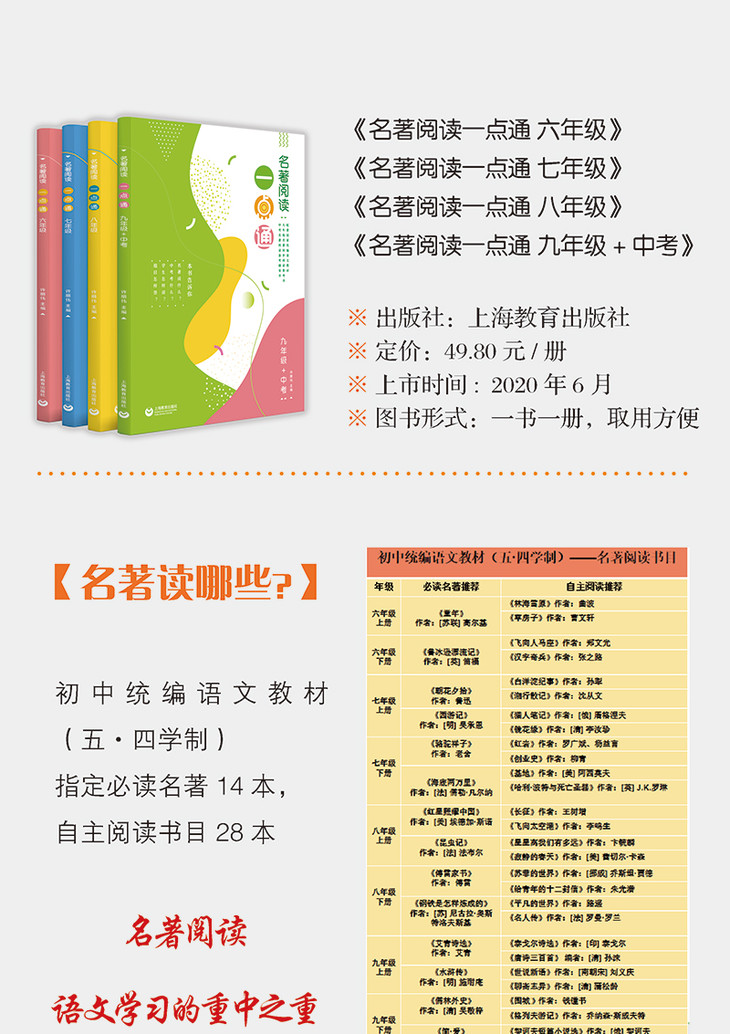 本书以教育部所发初中必读名著书目为依据,将书目中的每一部著作进行全方位解读,详细介绍这部著作的作者、写作背景、内容提要、艺术特色、思想内涵及文学地位,并欣赏其中地精彩片段,使学生快速了解这部名著的内容及特色,并能完成相关练习,从而培养阅读兴趣,提高文学鉴赏水平。