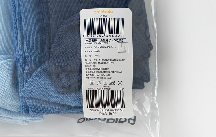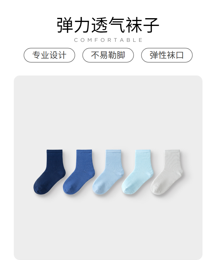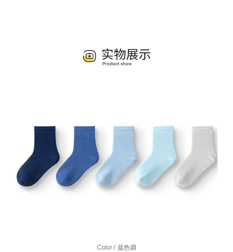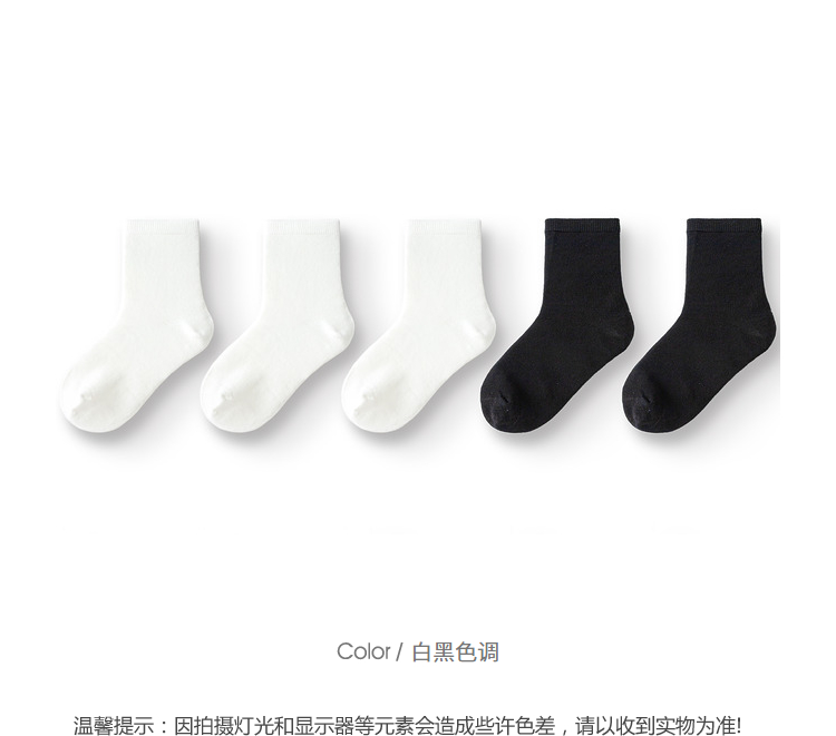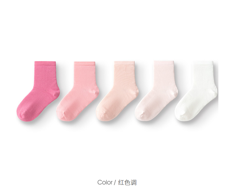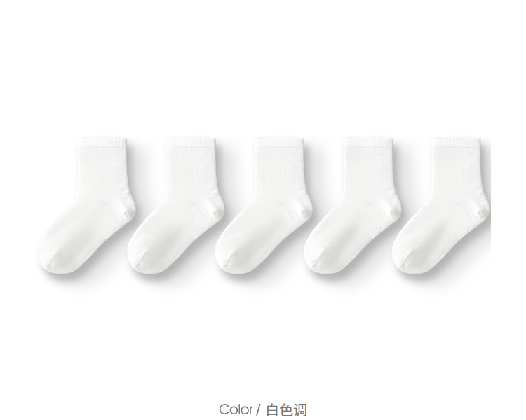 【超模君精选 儿童袜】巴拉巴拉儿童袜子秋季男女童棉袜中筒袜纯色舒适小童中大童五双装