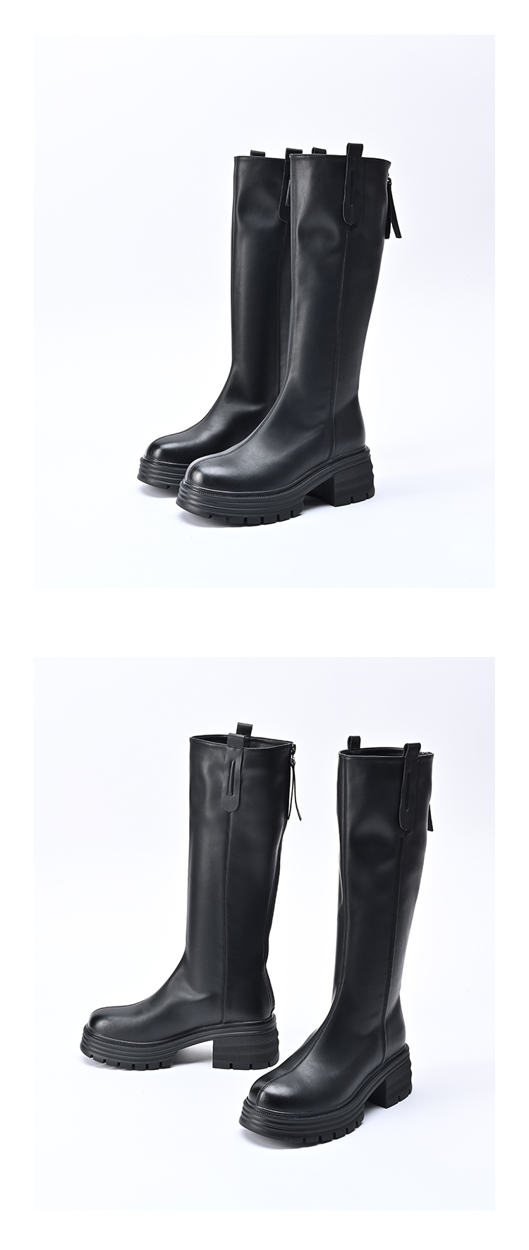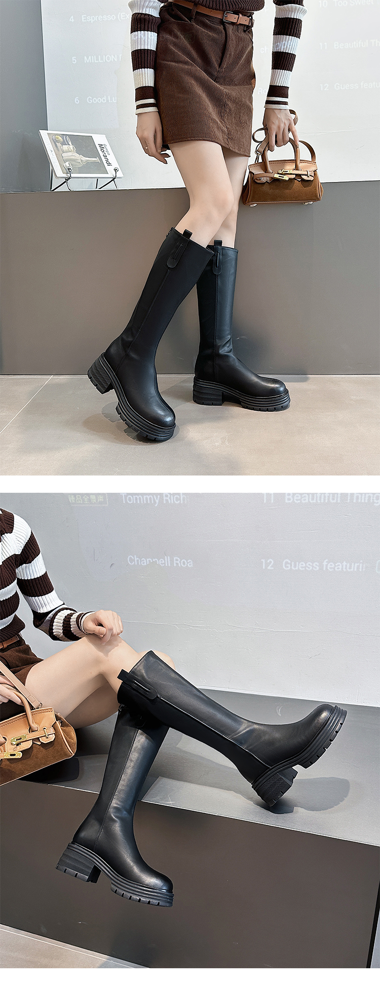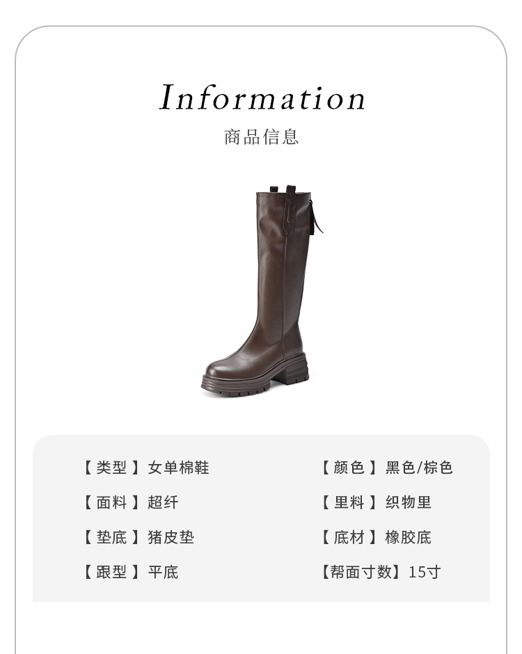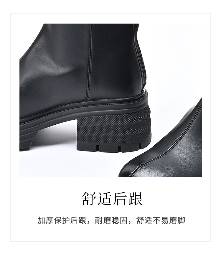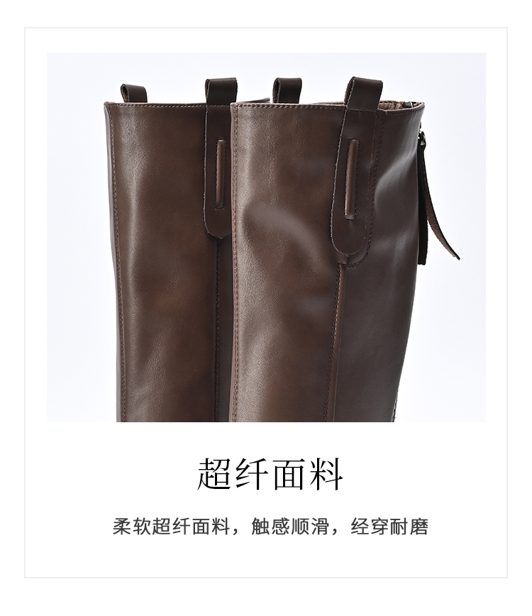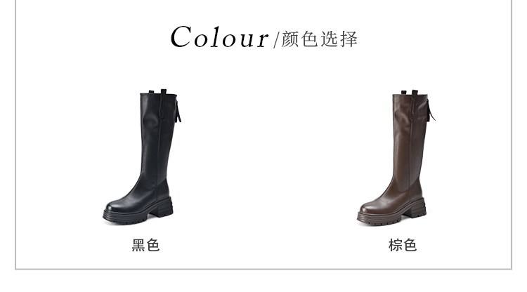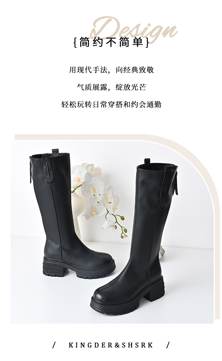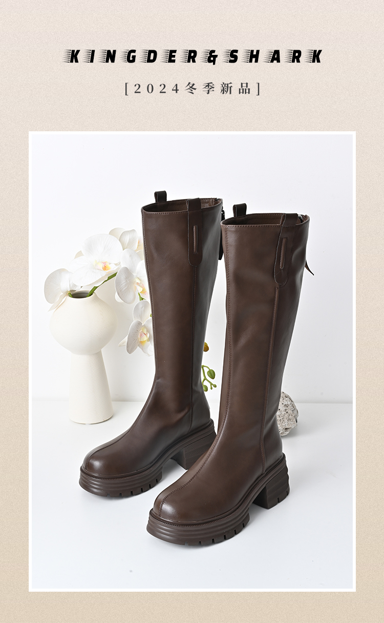 经典鲨2024年冬款百搭圆头中跟后拉链舒适显瘦加绒保暖时装长筒靴女KW279-D58351