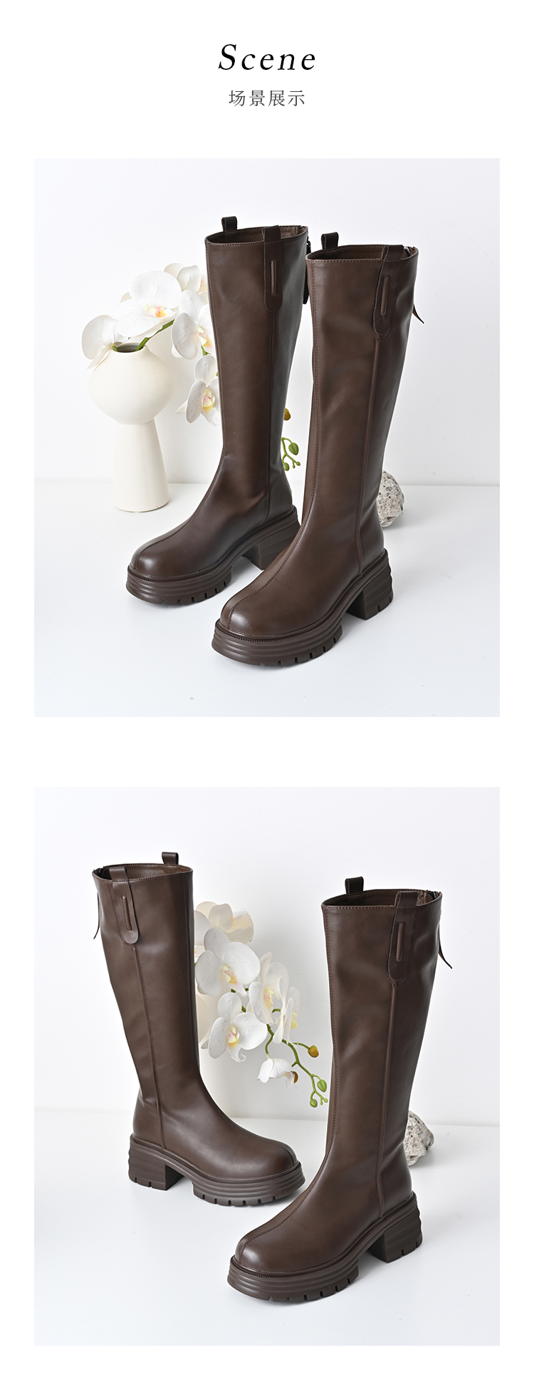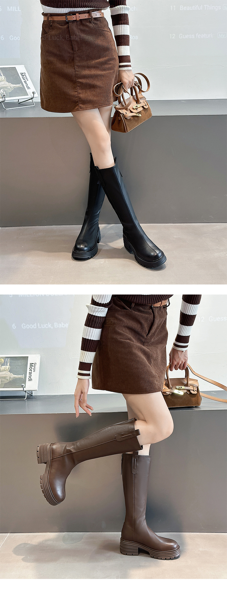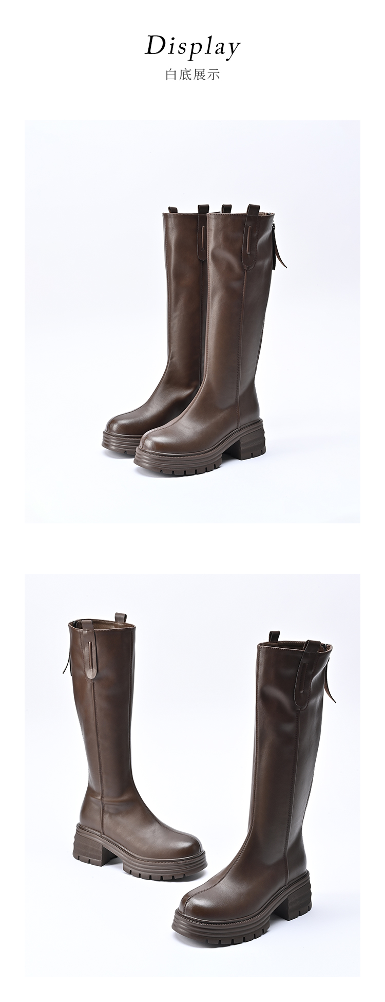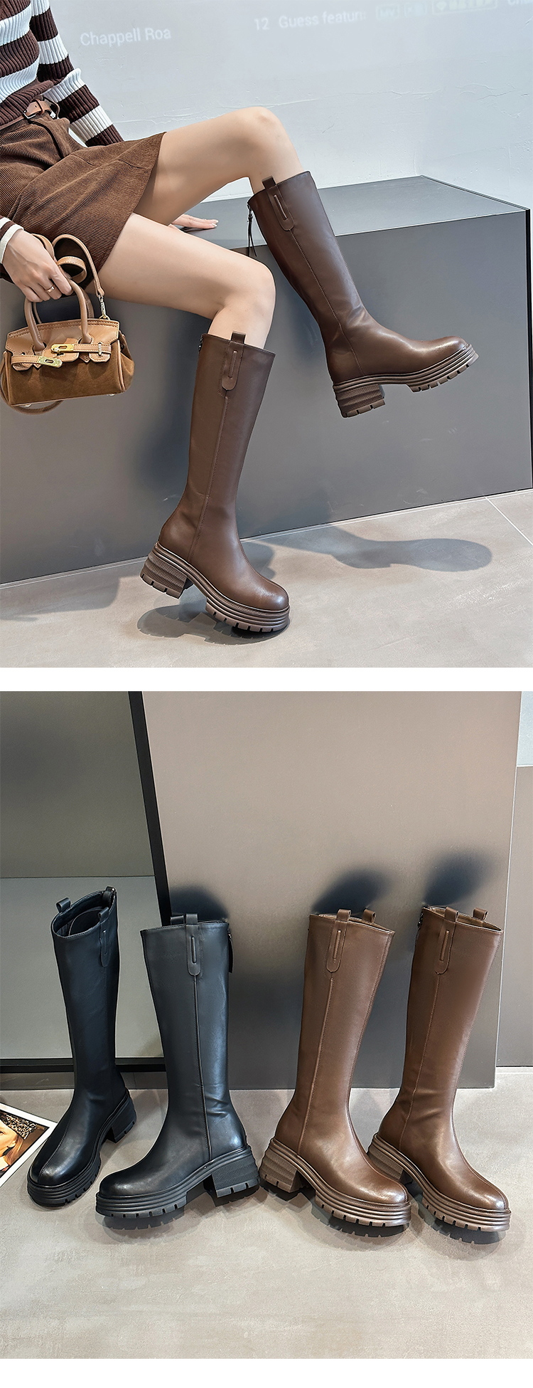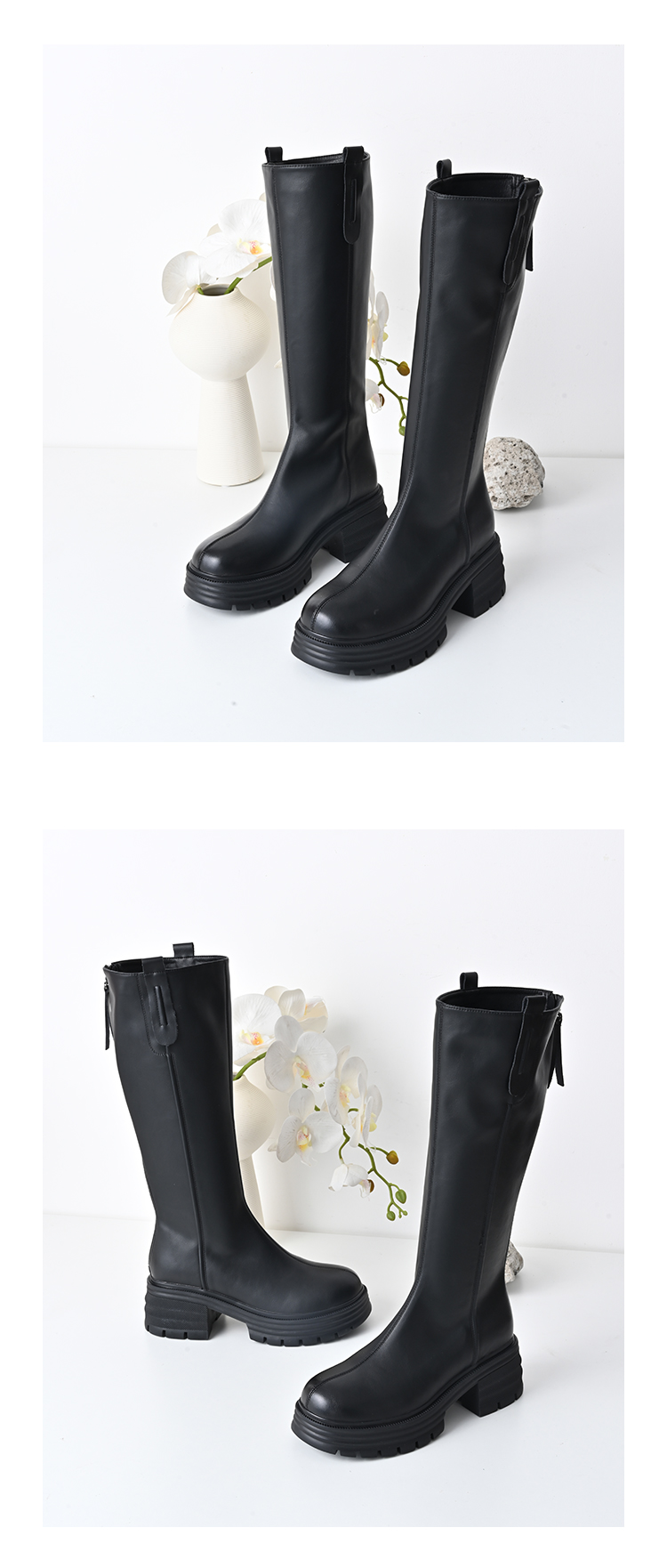经典鲨2024年冬款百搭圆头中跟后拉链舒适显瘦加绒保暖时装长筒靴女KW279-D58351