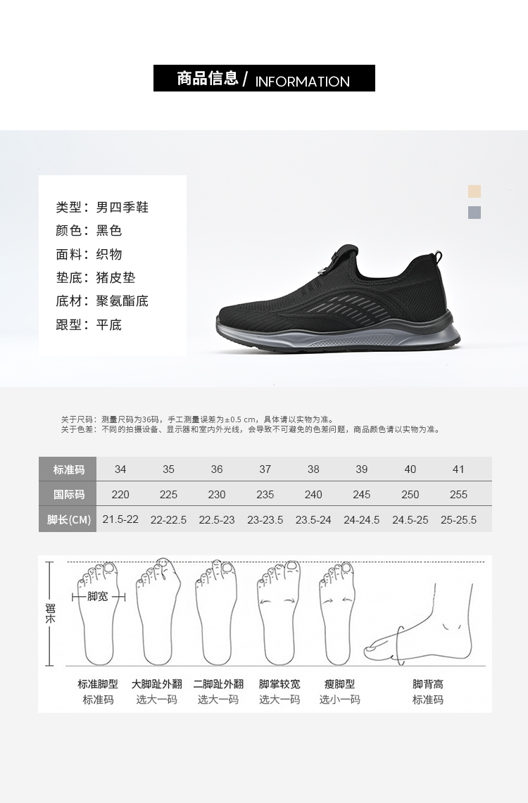 经典鲨2024年男士透气平底一脚蹬舒适休闲鞋跑步鞋KW262-D26061