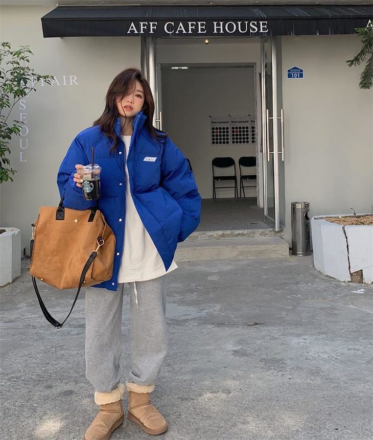 【时尚百搭❗️情侣羽绒棉服外套】韩版宽松克莱因蓝棉衣,男女士同款设计感小众棉服,新款立领冬天外套宽松网红学生棉袄外套父亲节礼物新年礼盒年货礼盒