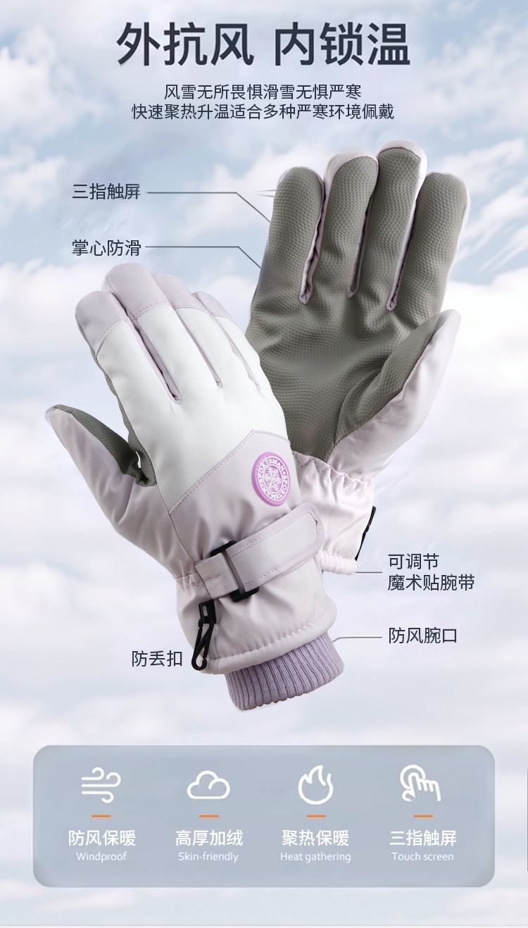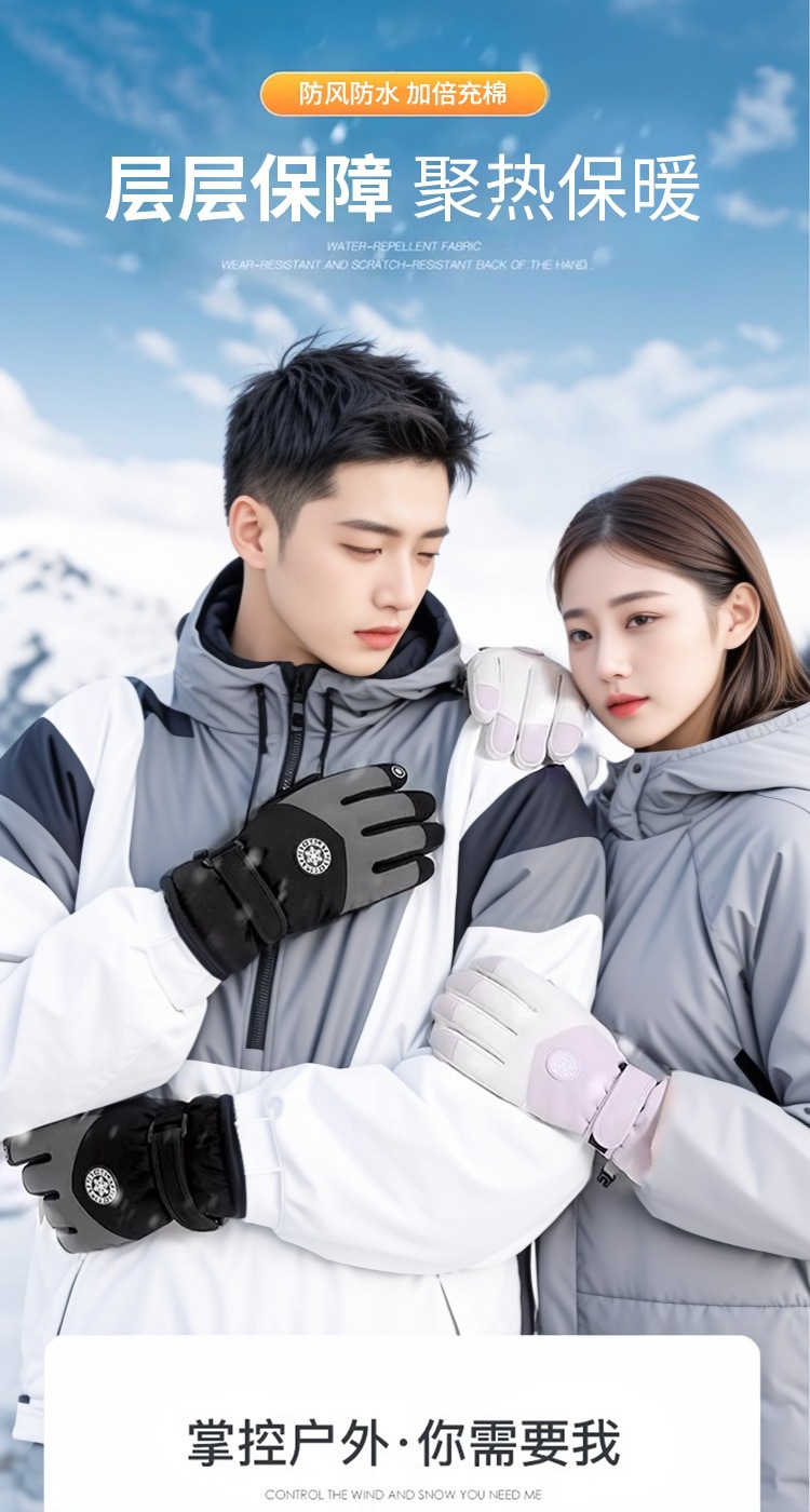 冬季保暖棉手套加绒加厚滑雪防寒手套户外骑行防风防冻手套情侣款