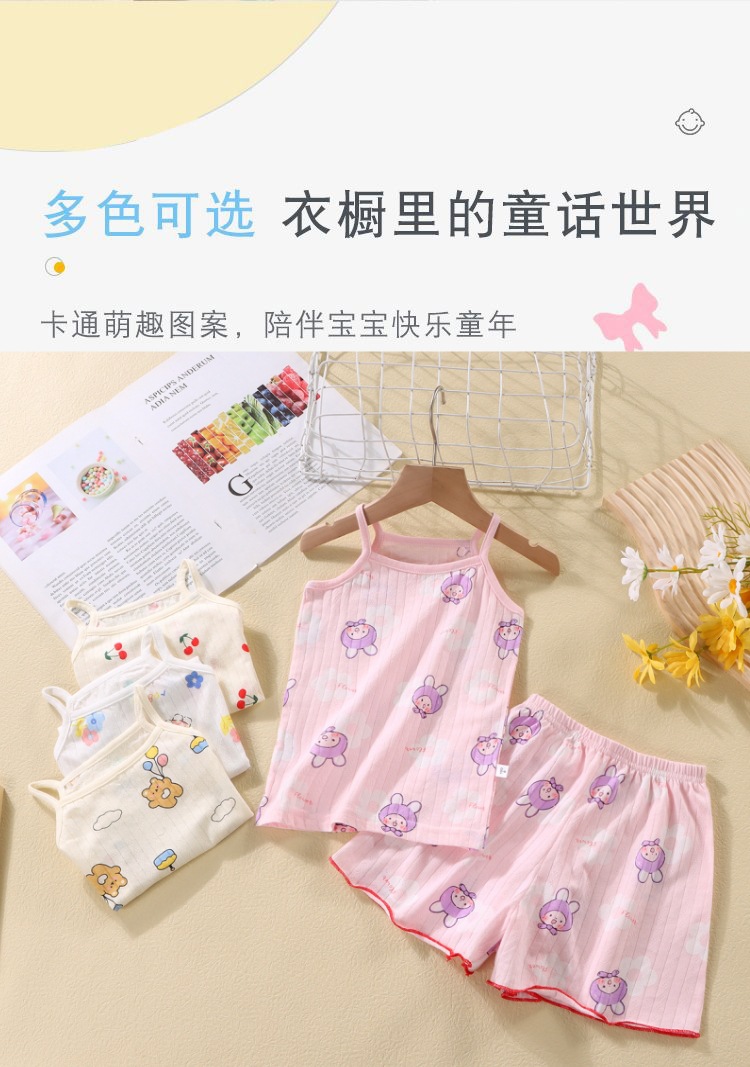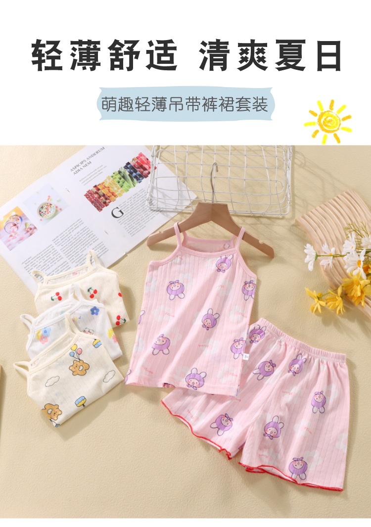【清新甜美❗️儿童吊带裤裙套装】舒适柔软亲肤透气,凉爽轻薄快速吸汗,柔软呵护宝宝肌肤,甜美可爱穿着舒适,夏季女童全棉睡衣家居服吸汗背心短裙宝宝空调服