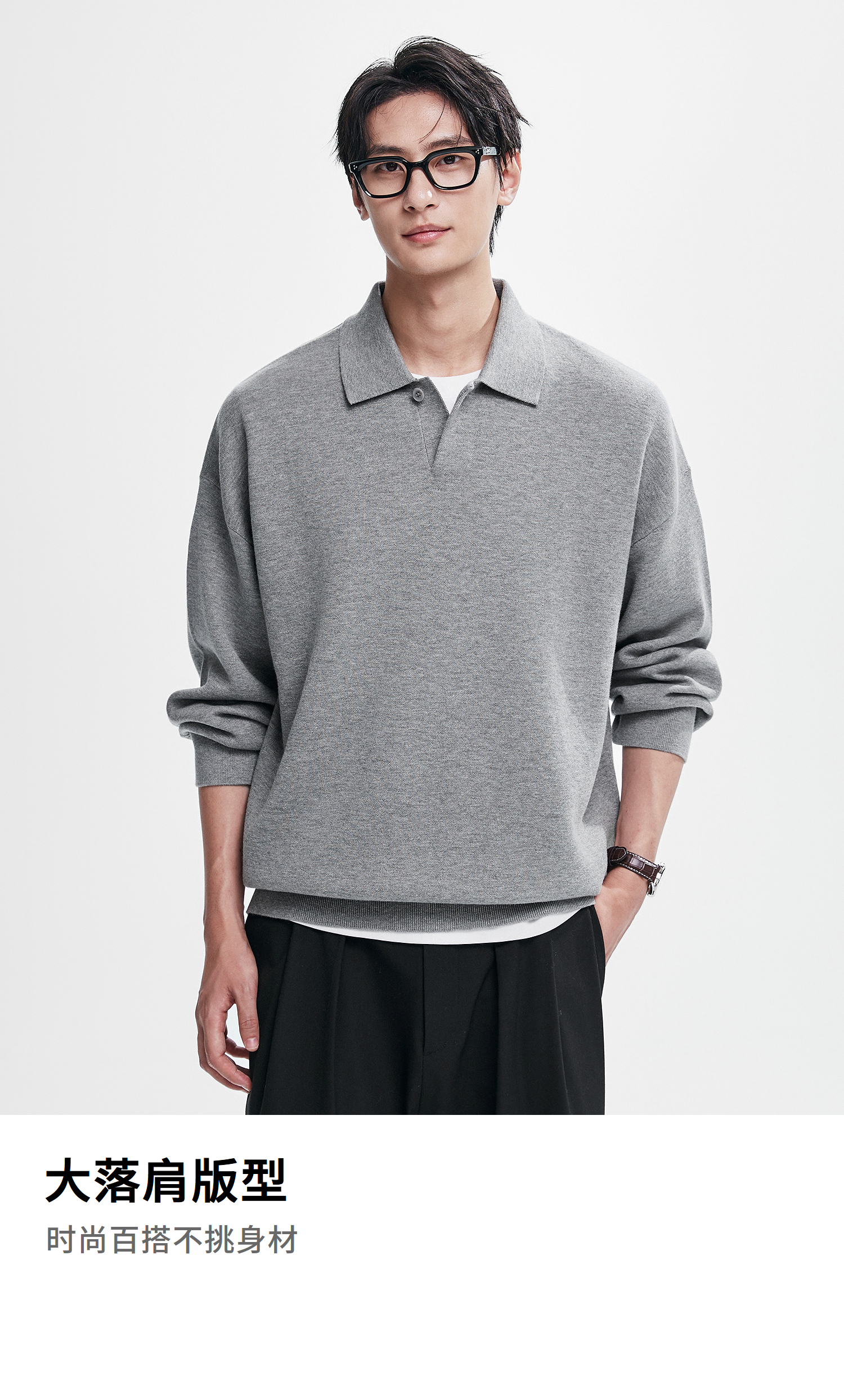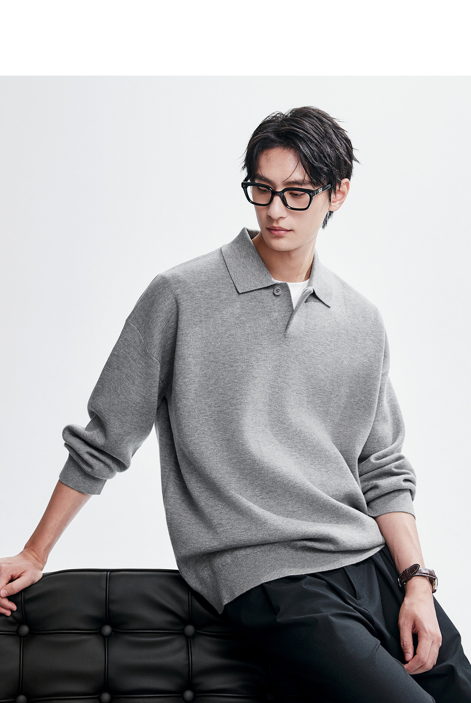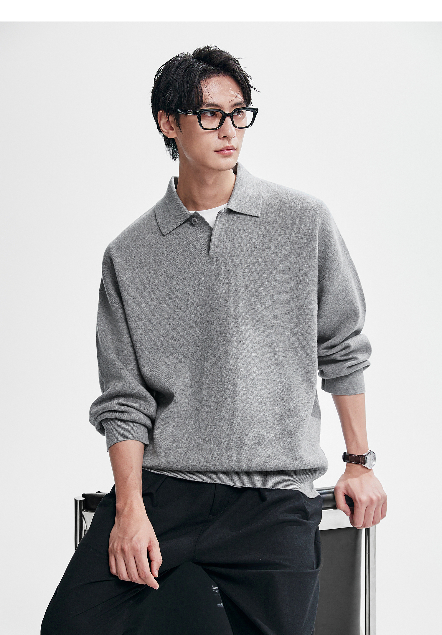 棉仓367826040-老钱风可机洗POLO领毛衣男 秋冬微宽松套头毛衣针织衫