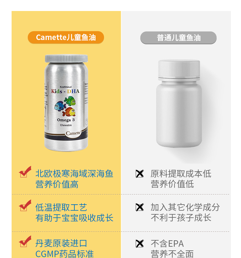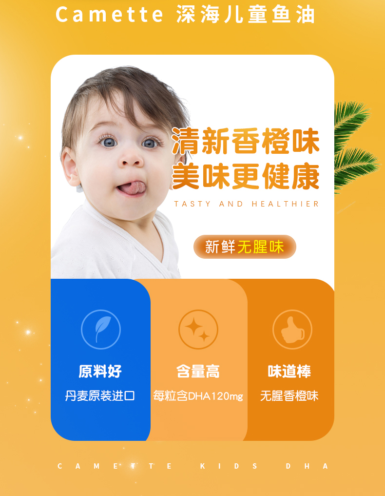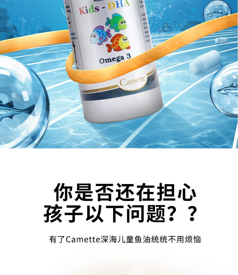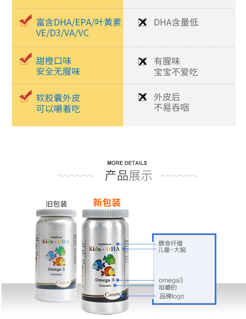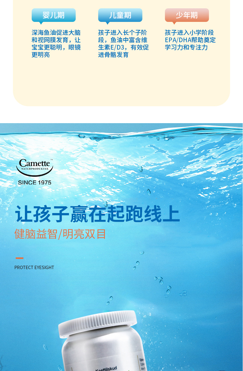 可咀嚼omega-3 · 丹麦Camette 新款儿童鱼油 儿童DHA含叶黄素 120粒|保税