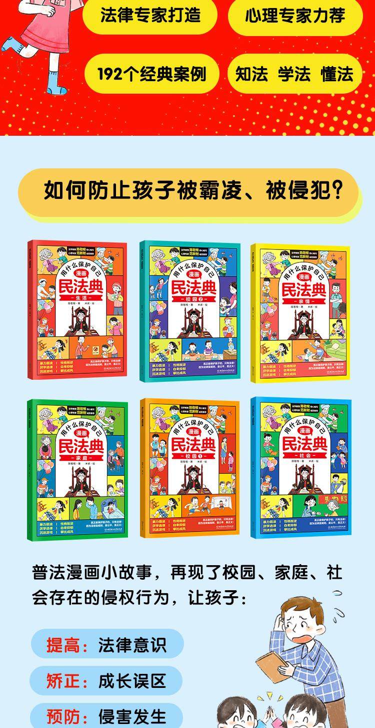 漫画版民法典全6册让孩子学法懂法学会如何保护自己法律启蒙书漫画民法典2023年版正版漫画儿童漫画书儿童版全套用什么保护自己6册