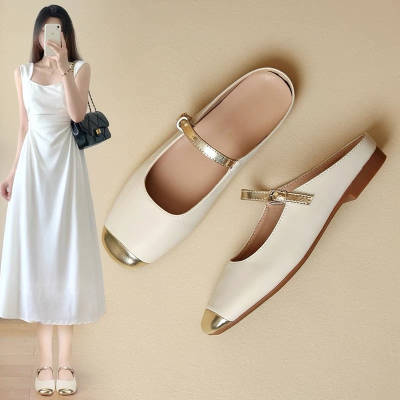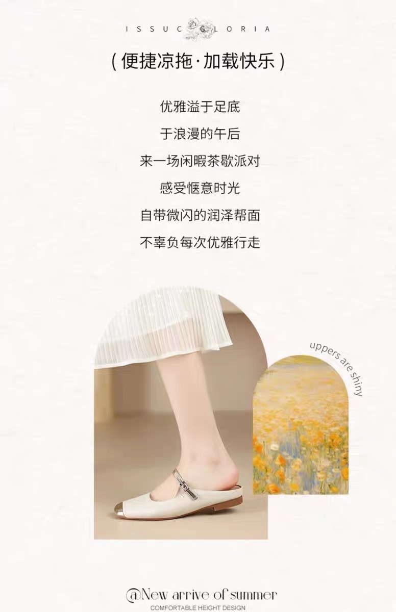 【DA.keaton真皮小香风半托】松弛惬意 感受传统与现代的完美融合 小香风与金属色 让东方美学绽放脚下 定制头层牛皮米色,金色,银色 配色低调高级清新优雅