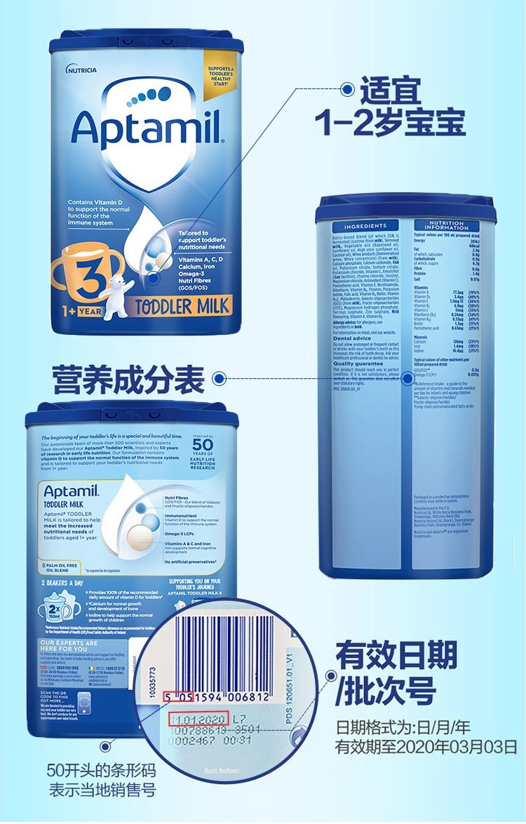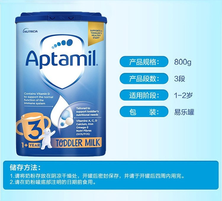 [极速送达]英国 爱他美(Aptamil)婴幼儿奶粉 3段 800g (新版)