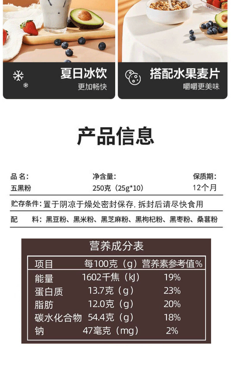 【五黑粉】黑芝麻黑豆黑米黑枸杞桑椹黑枣 以黑养黑营养代餐