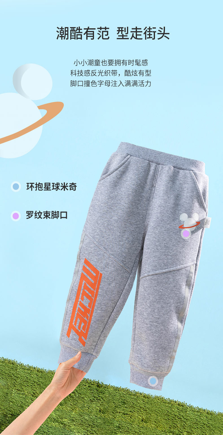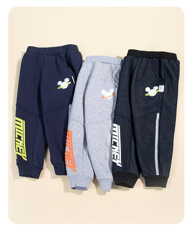 迪士尼童装秋冬加绒保暖长裤时尚休闲男童裤子