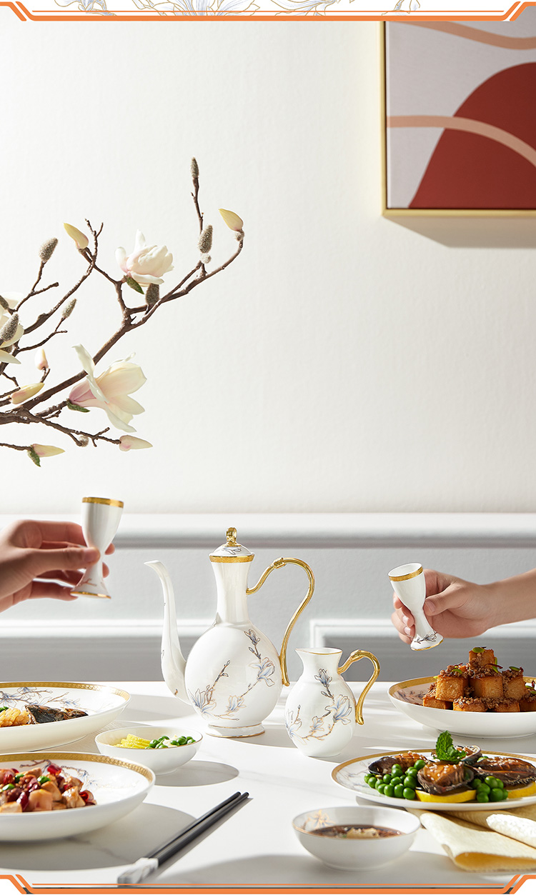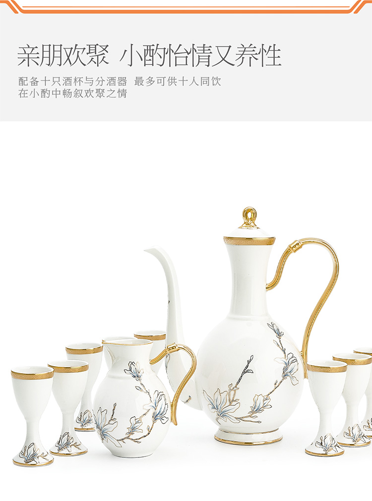 【6F】玛戈隆特 进博盛宴13头酒具套装 10人份骨瓷珐琅彩家用白酒具酒杯套装 礼盒包装