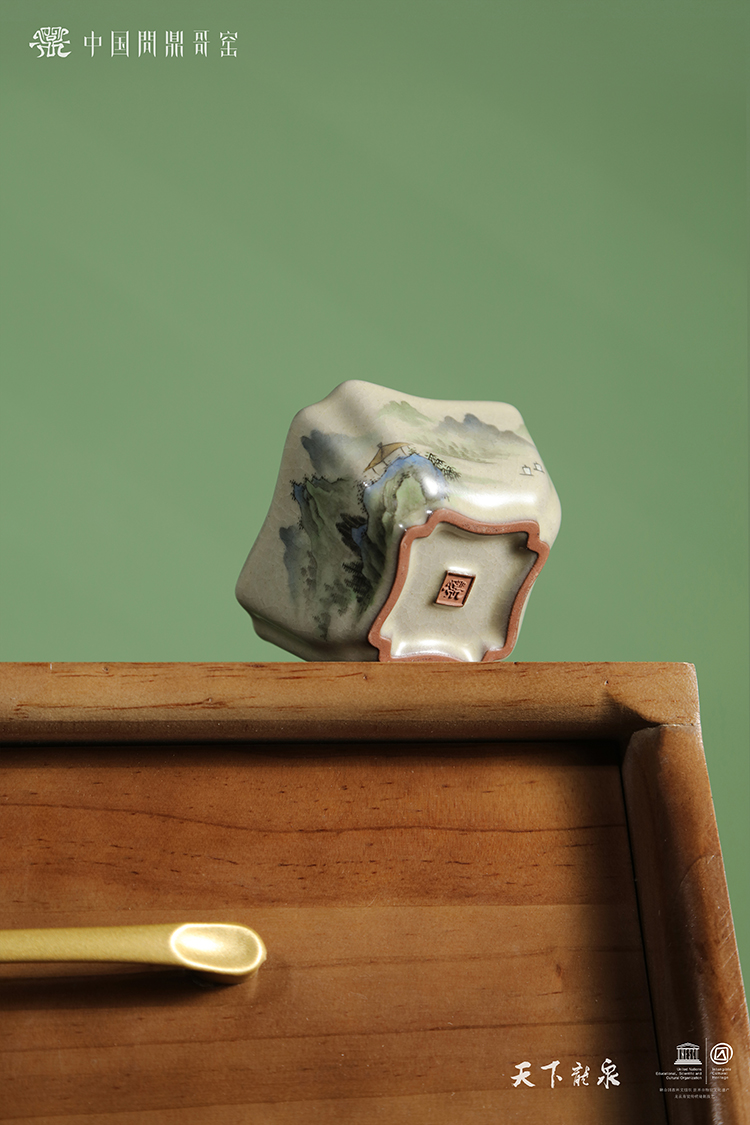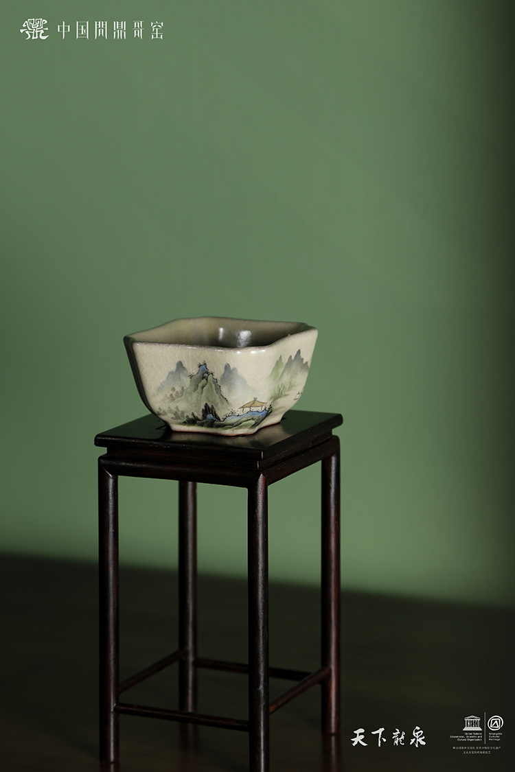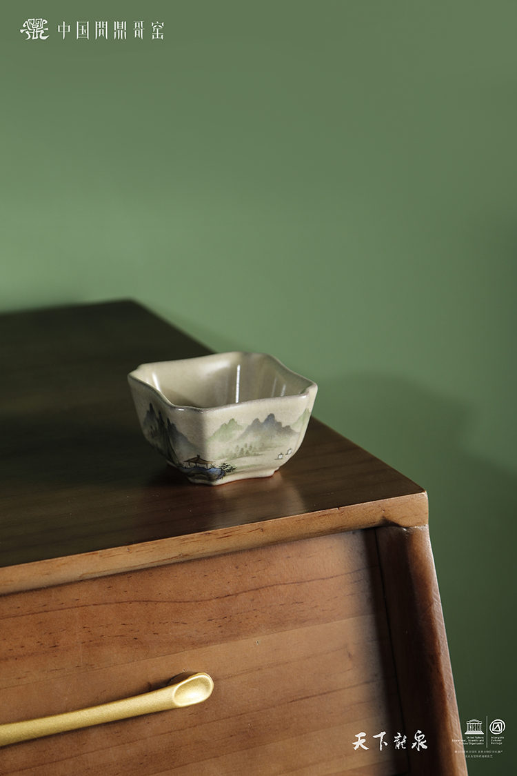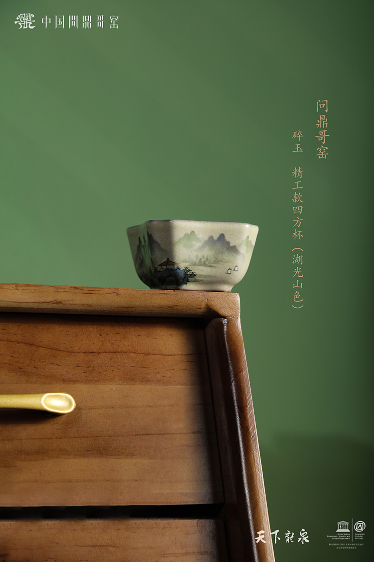 问鼎哥窑精工款四方杯(湖光山色)(缺货)