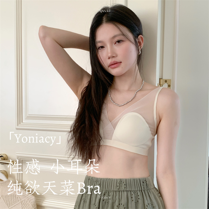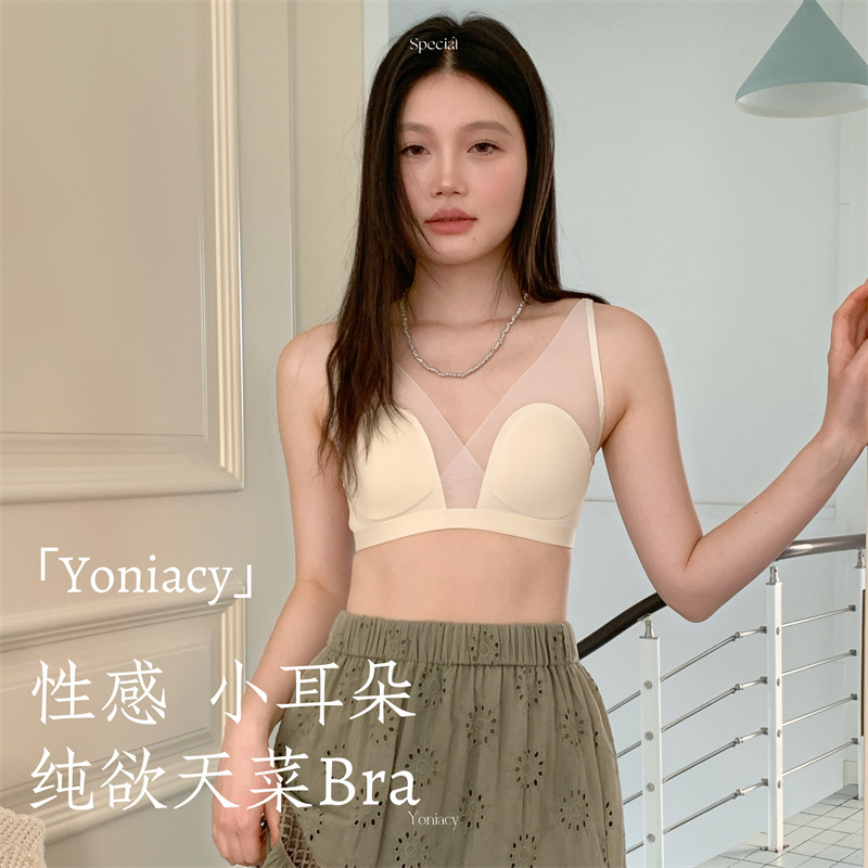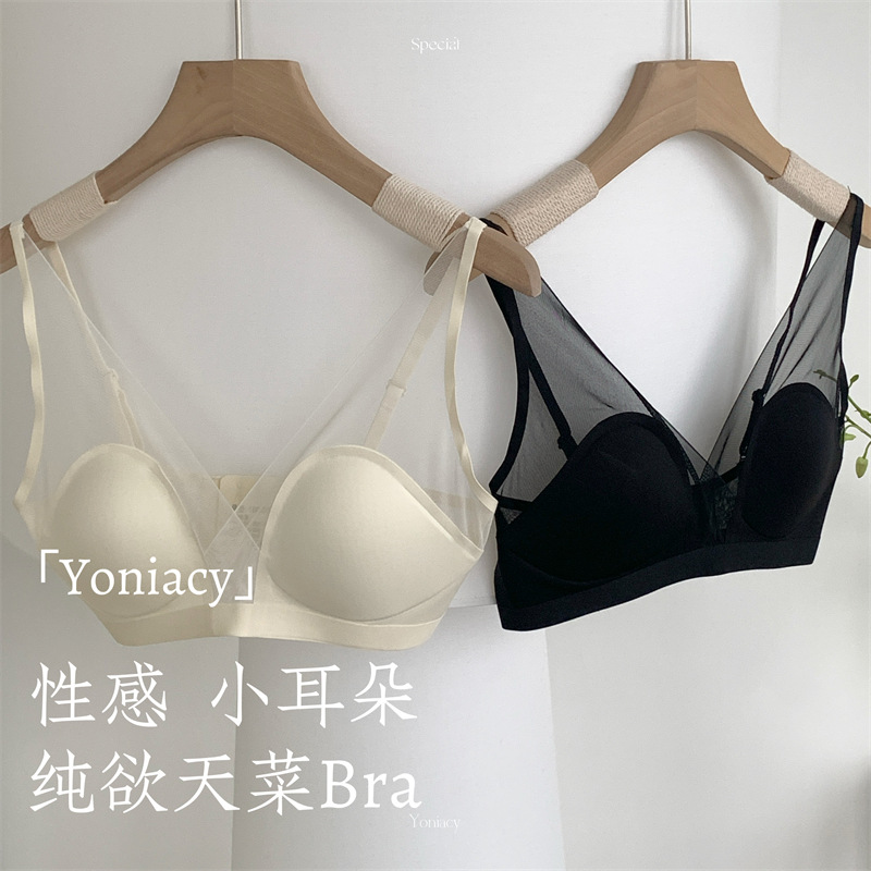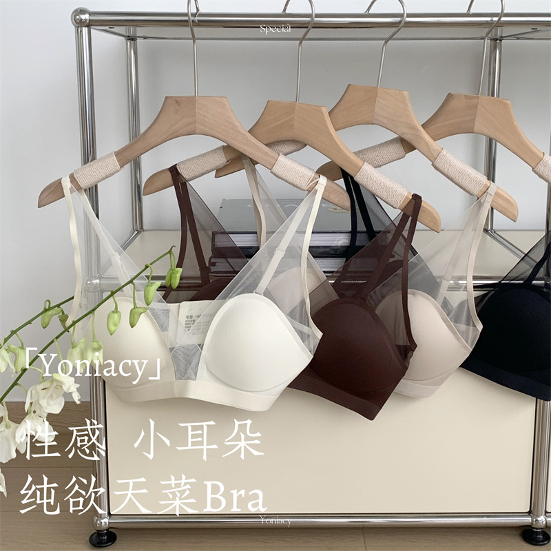 【性感小耳朵】春夏季新款薄款法式性感兔耳杯文胸 无钢圈无痕女无痕纯欲聚拢内衣全罩杯显瘦不凸点