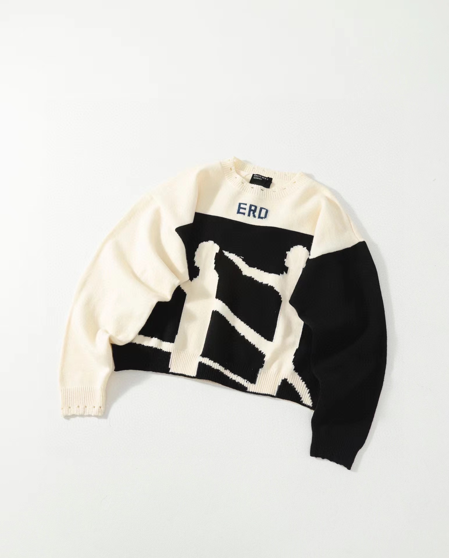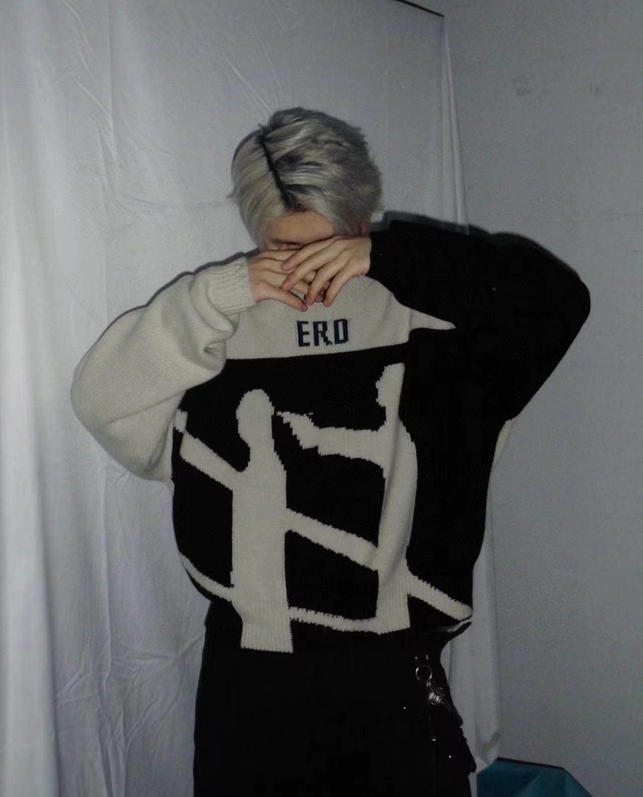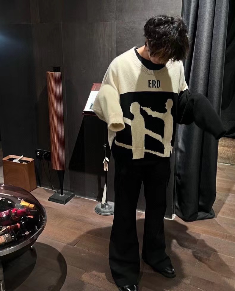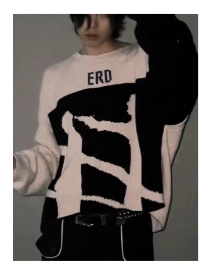 时尚高街手工破坏羊绒毛衣 情侣款爆款来袭, 致敬香港jing典电影【无间道】画面,羊极绒手工粗针勾破做坏工艺,时尚偏短款宽松版设计,上身gao级感十足!定制澳洲羊毛混纺面料,16支走锭纱线嵌花工艺,毛条细度19.5-19.7 ,整体走线没有过度松垮,也不会很扎肌肤,上身chao级舒适,锁温更保暖!工艺方面采用人像剪影嵌花公子,领口袖子纯手工粗针勾破做坏,非常耗时重工。宽松偏短款的设计风格,上身显瘦显腿长,调性十足百搭的一款!潮咖男女内搭外穿,自留好货,强烈推荐~